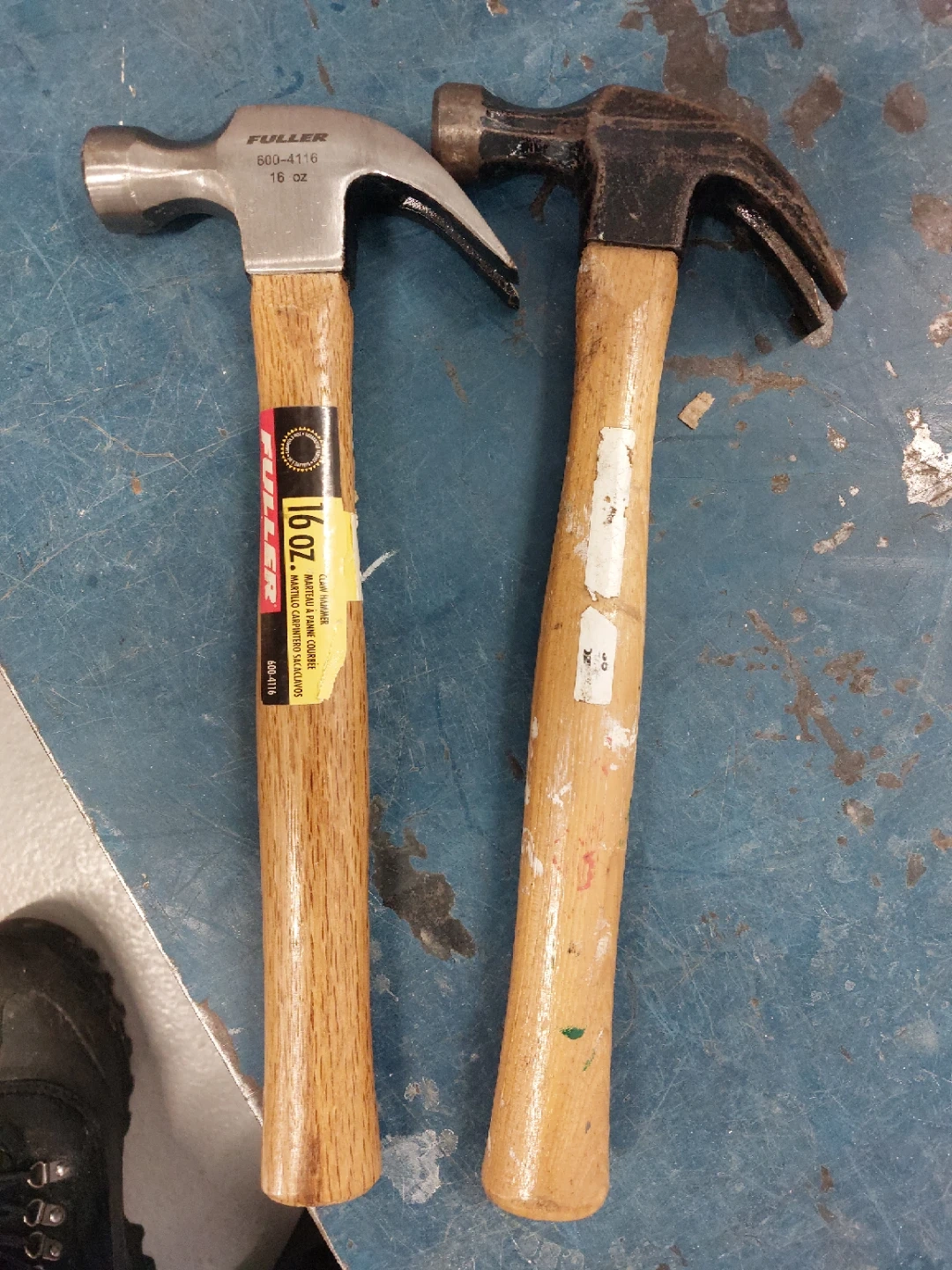 Selling a set of two claw hammers. One is a Fuller 16oz hammer in good condition, and the other is a used claw hammer of similar size. Perfect for your DIY projects or toolbox!