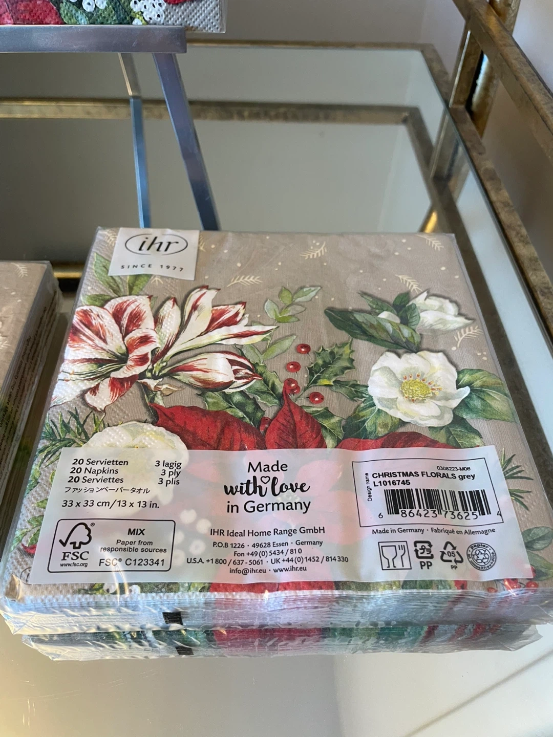 Selling a bundle of 3 packs of poinsettia paper napkins .