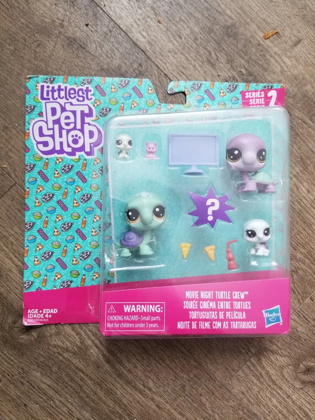 Selling a Littlest Pet Shop Movie Night Turtle Crew set from Series 2! This set includes 2 Classic, 1 Mini, and 2 Teeniest scale pets, along with 5 accessories. It's brand new and ready for a new home!