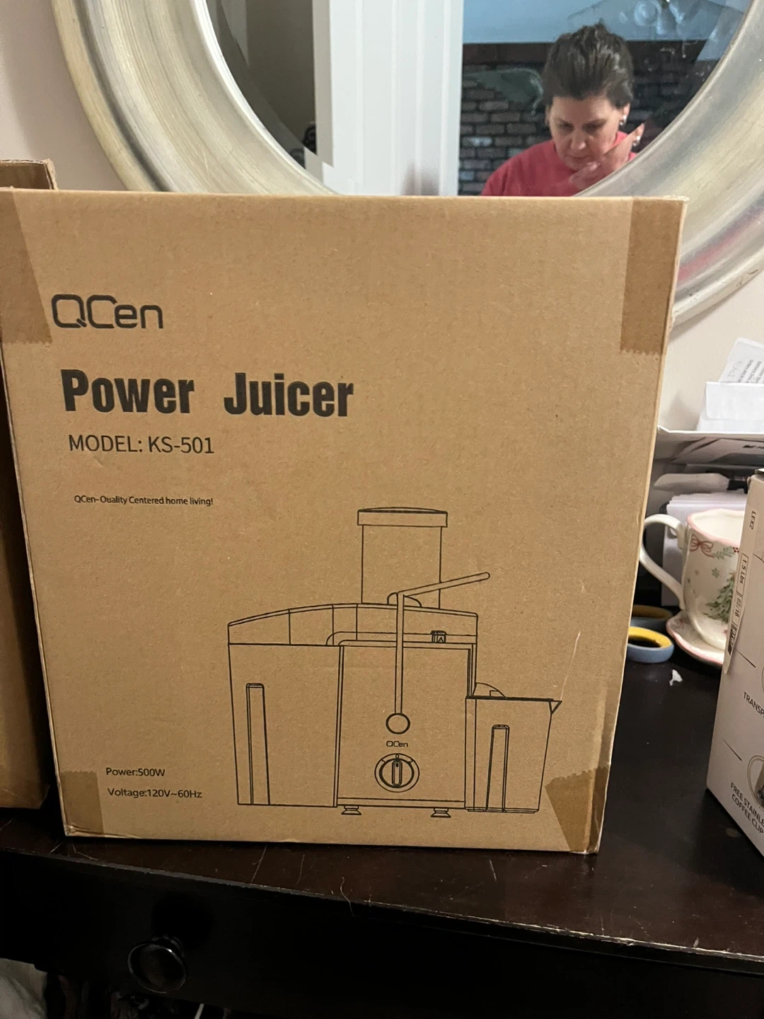 Selling a QCen Power Juicer, model KS-501. It's in its original box. The juicer operates at 500W and 120V~60Hz. Perfect for anyone looking to enjoy fresh juice at home!