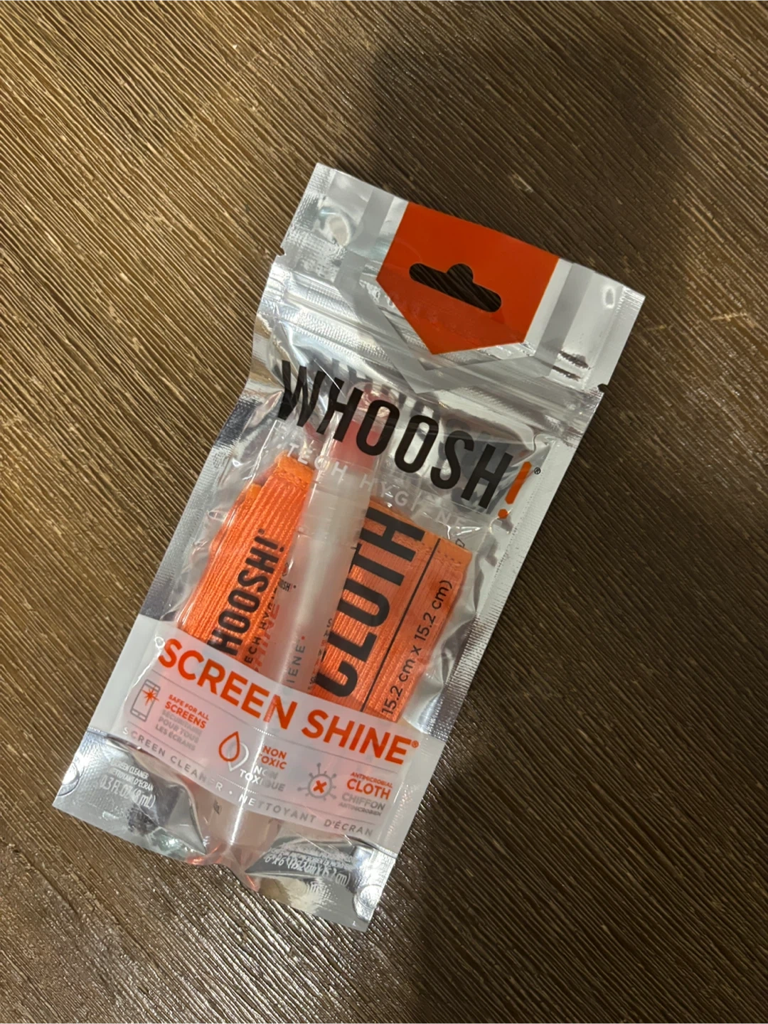 screen cleaner kit. It's safe for all screens, non-toxic, and alcohol-free. It resists fingerprints and is perfect for keeping your devices clean and shiny! The kit includes a screen cleaner and a cloth (15.2 cm x 15.2 cm)