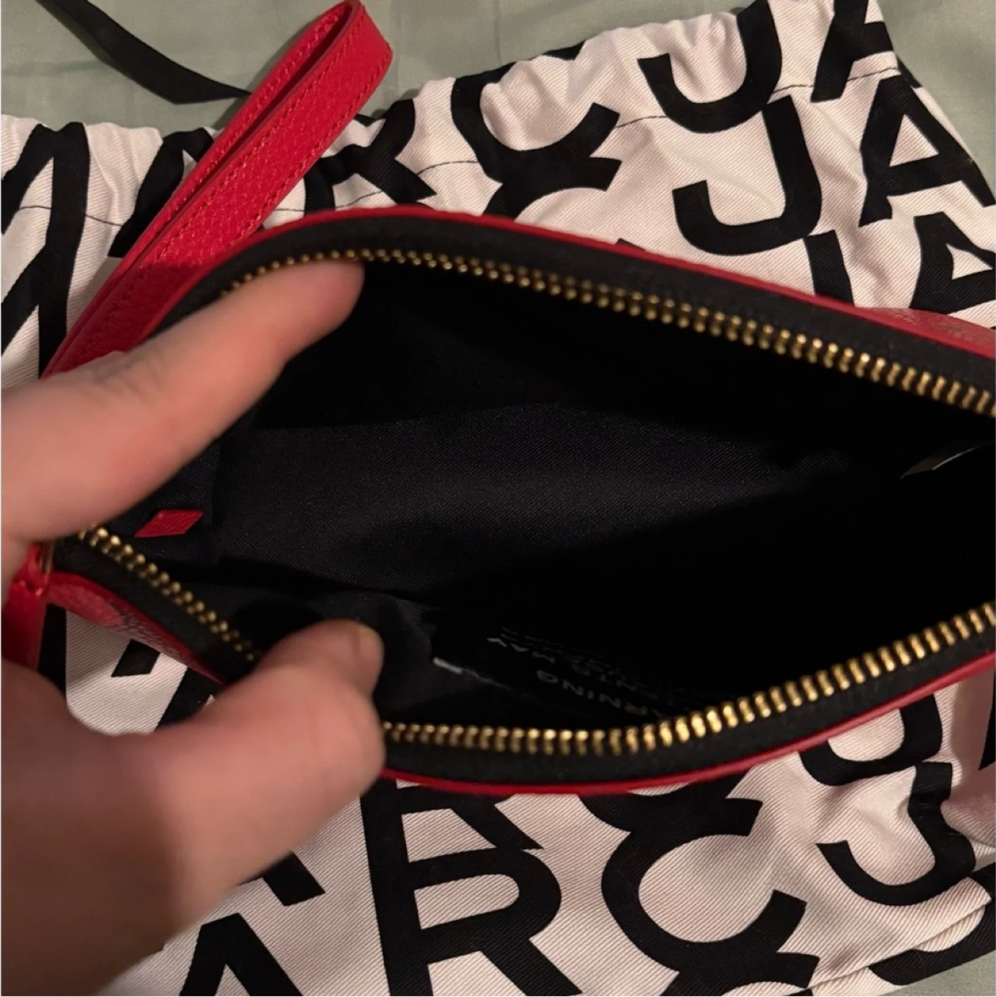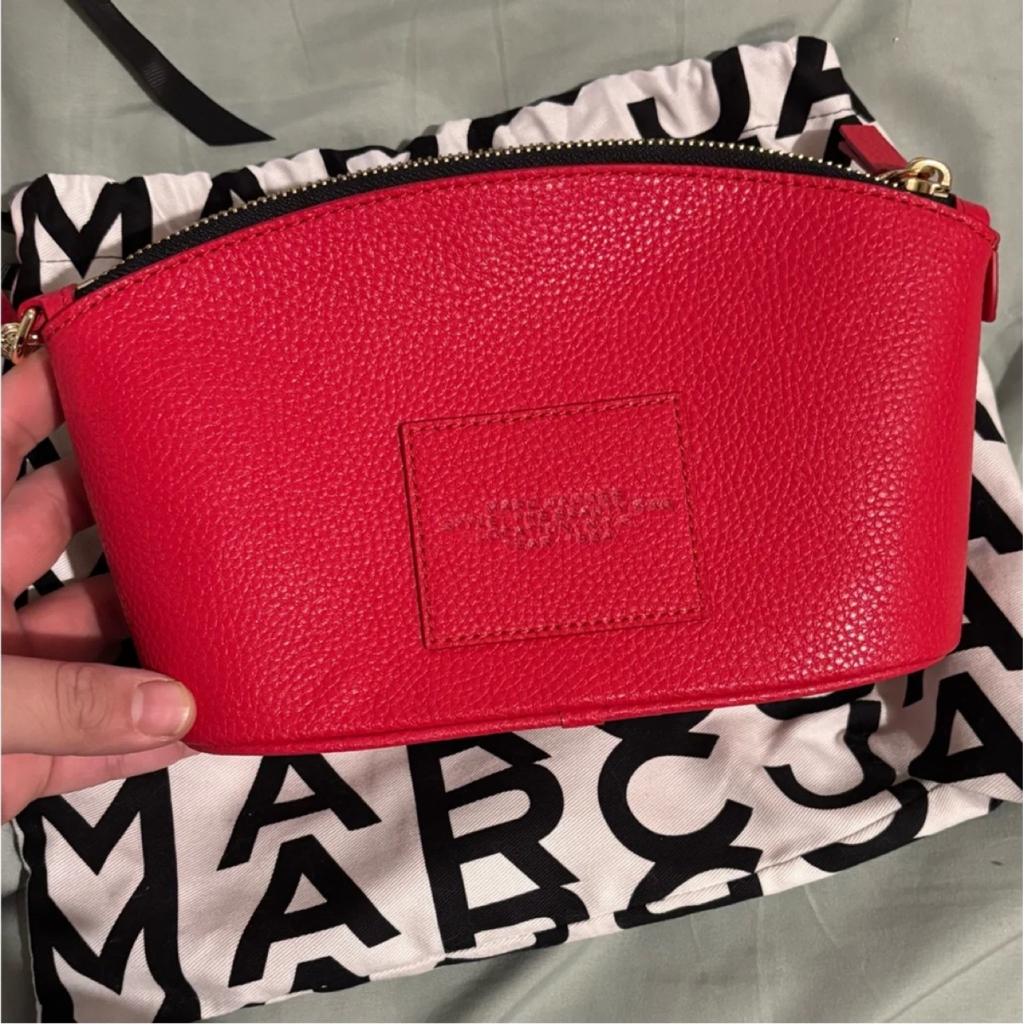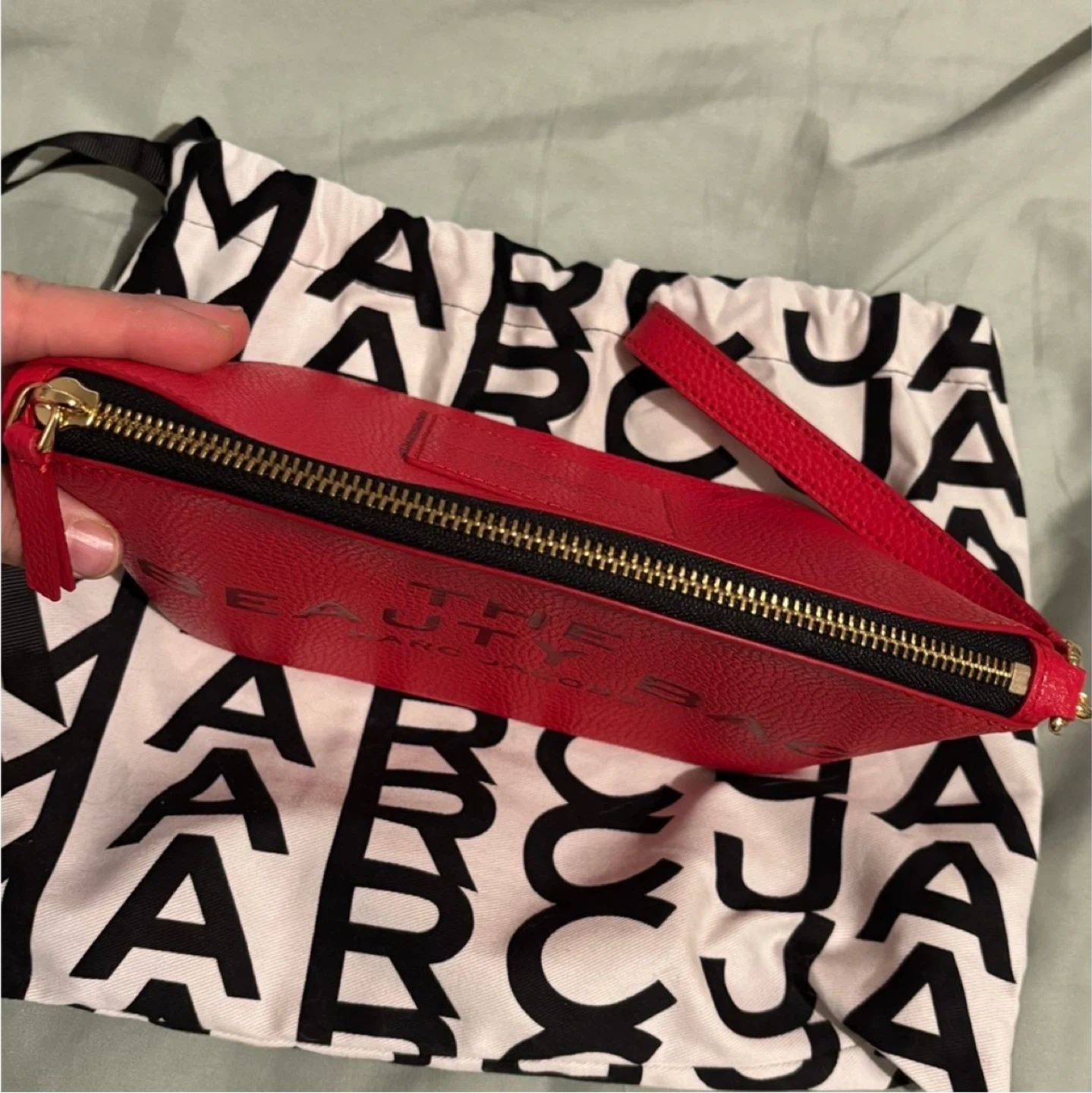 Selling a red Marc Jacobs "The Beauty Bag". It's never been used and comes with its original dust bag! The bag has a zipper closure and a wrist strap. The interior is lined with black fabric.