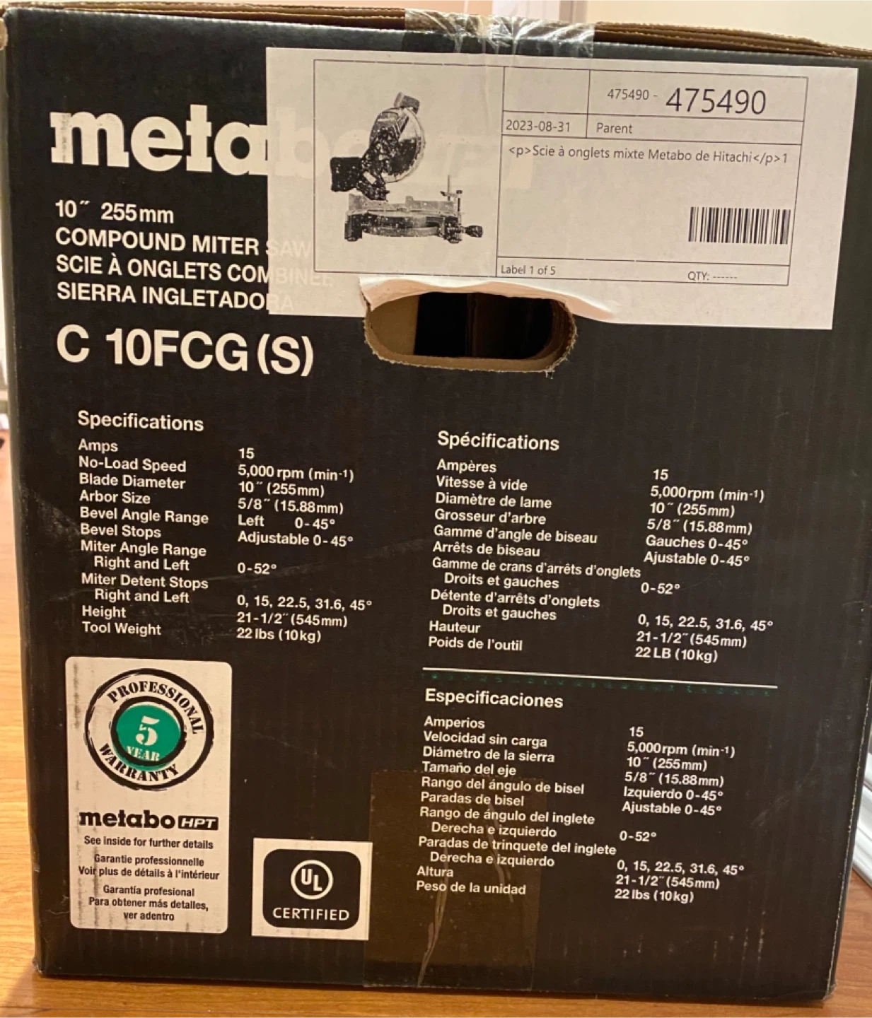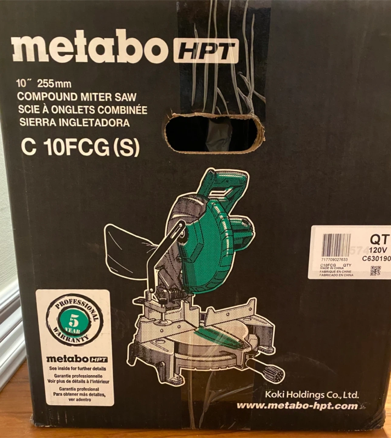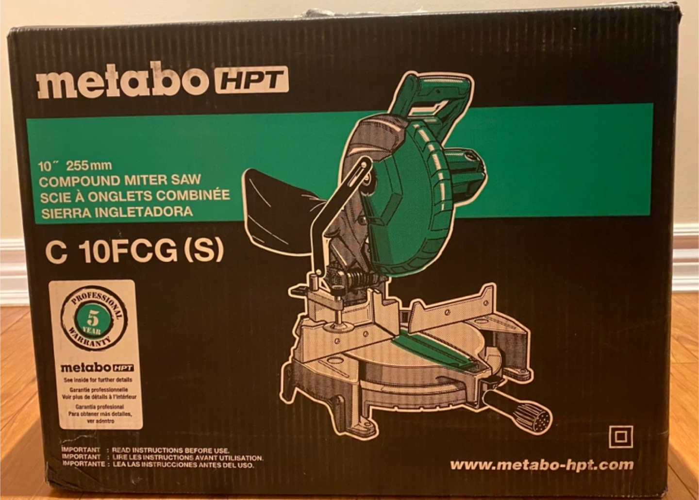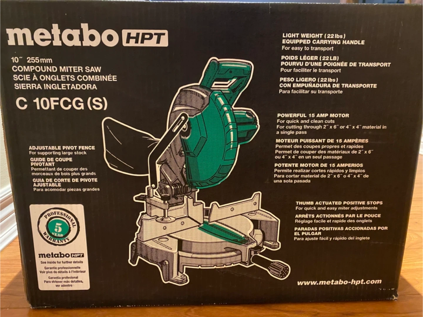 Selling a brand new unopened Metabo HPT 10" 255mm Compound Mitre saw, model C10FCG(S). It features a powerful 15 amp motor. Also has an adjustable pivot fence for supporting large stock. It's lightweight at 22lbs for easy transport.
