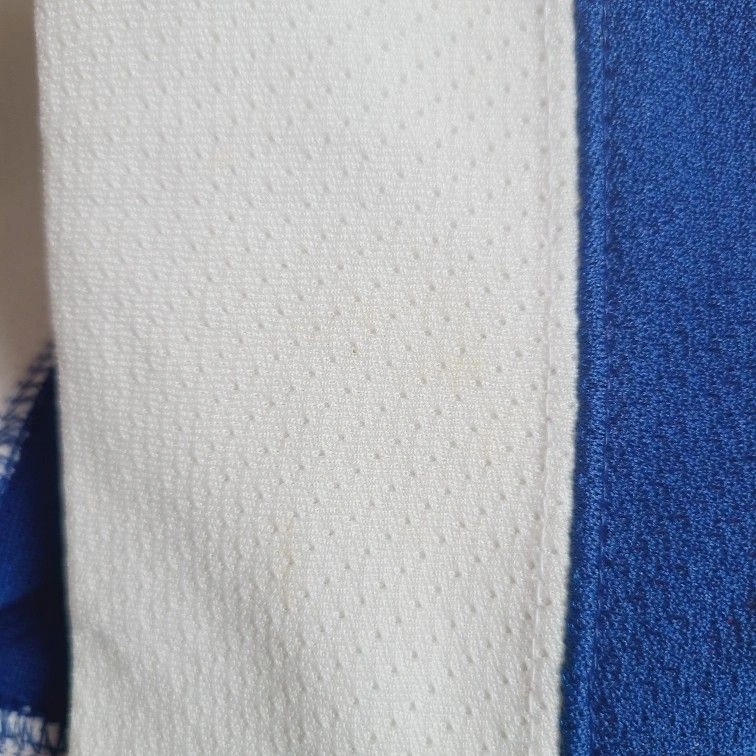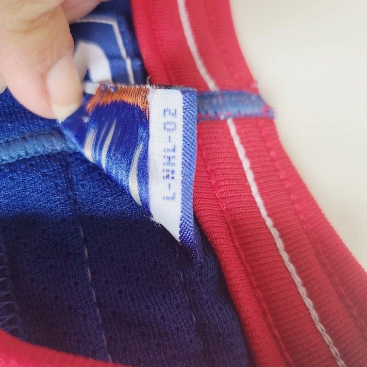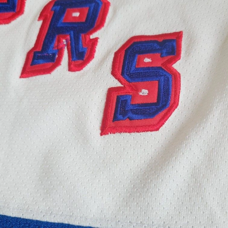 Features vibrant red, white, and blue colors with bold lettering. There are 4 spots on the jersey, minor but please see close ups. Freshly washed and comes from a smoke free, pet free home.