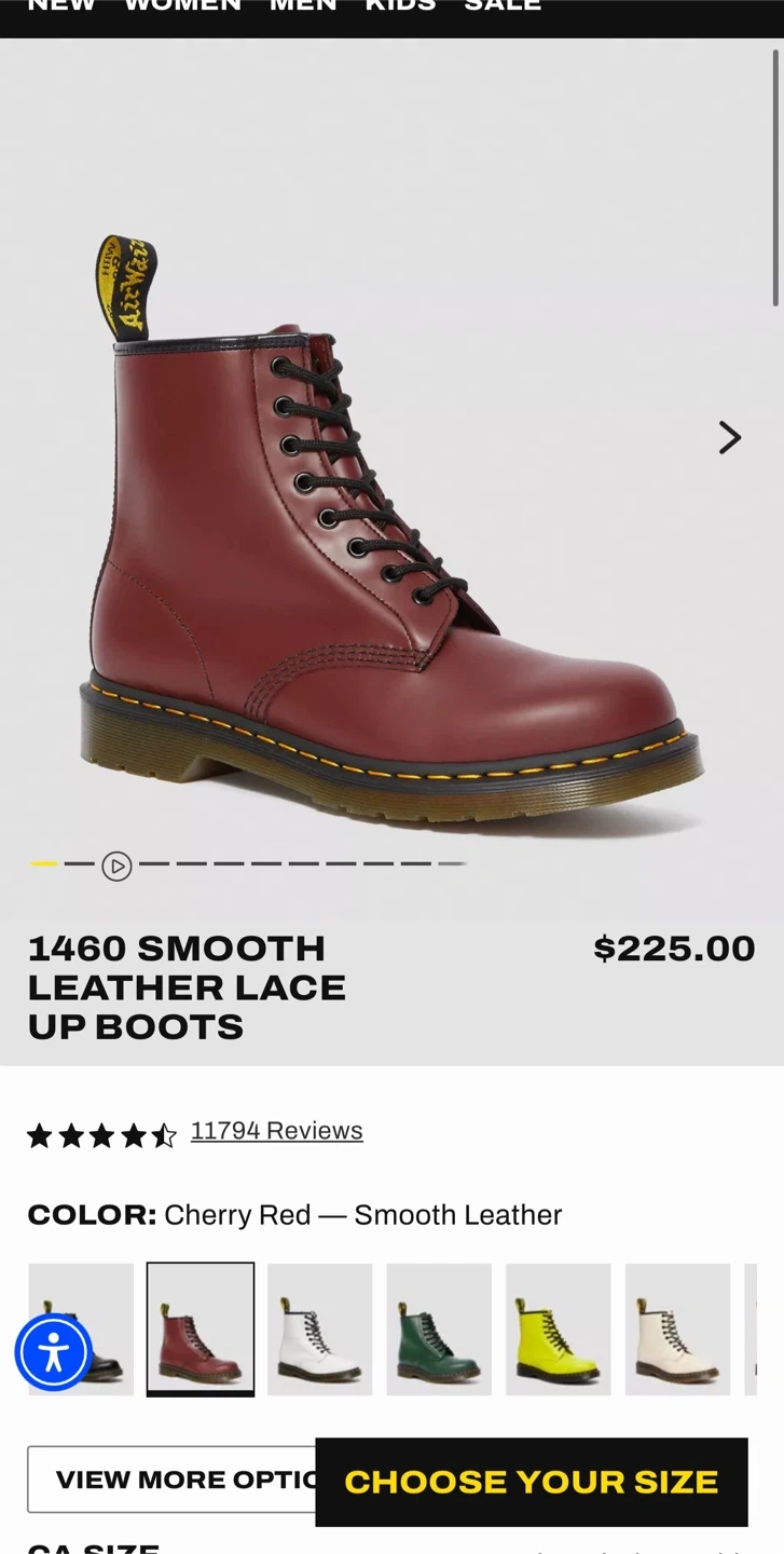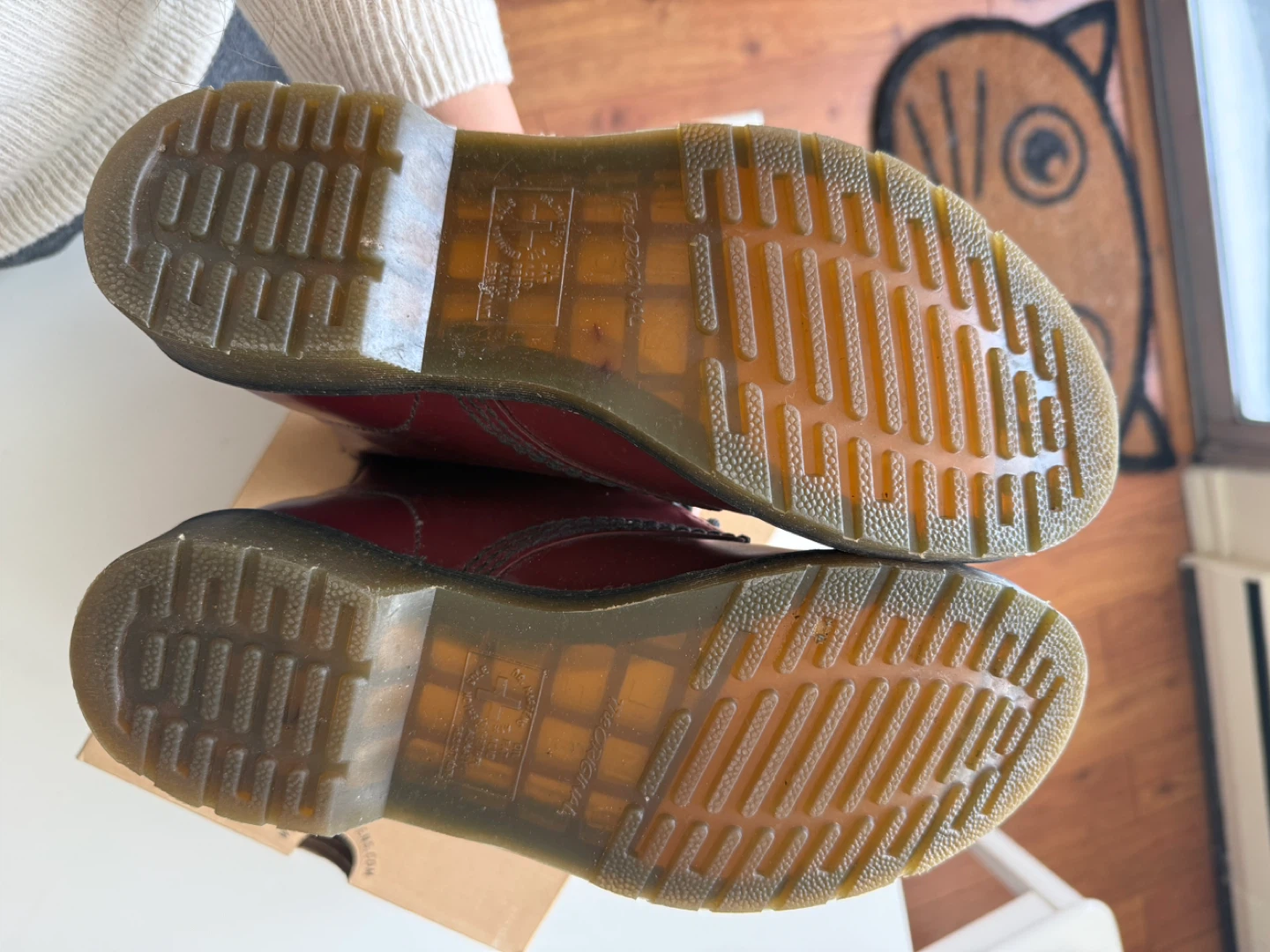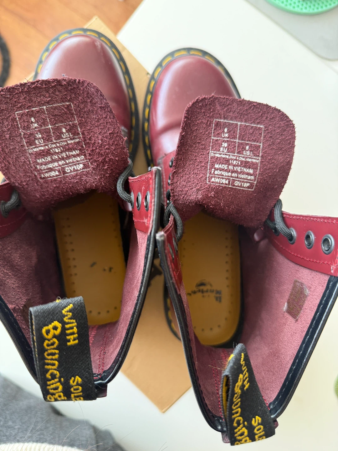 Selling my Dr. Martens 1460 Smooth Leather lace-up boots in a beautiful cherry red rouge color.