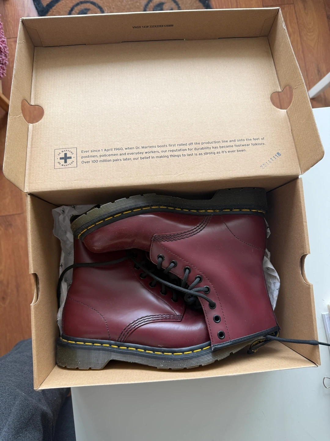 Dr Martens 1460 Boots Cherry Red Rouge Size 8 (Original Box)