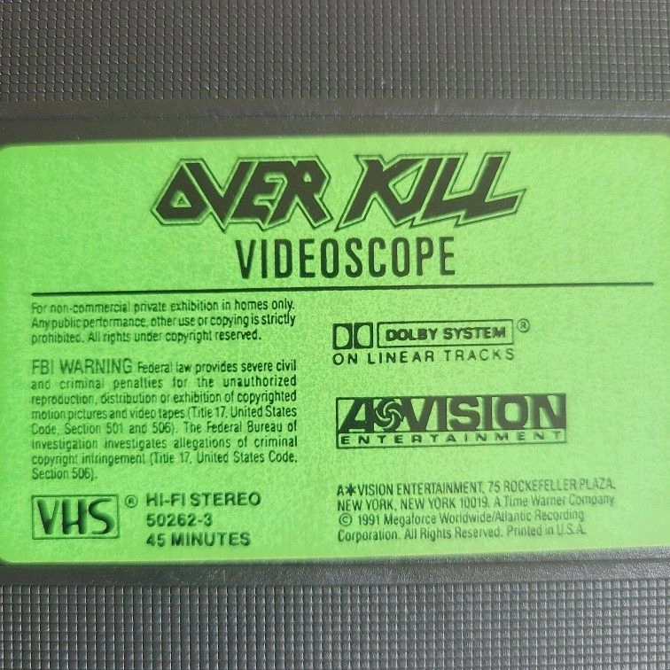 1991 OVERKILL VIDEOSCOPE VHS Heavy Metal vtg band