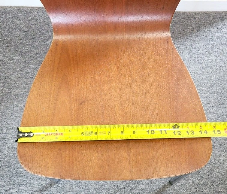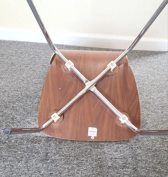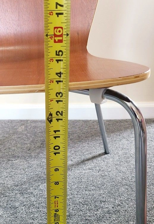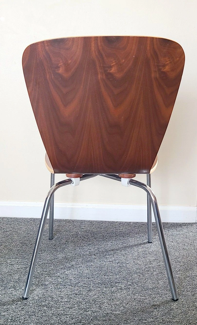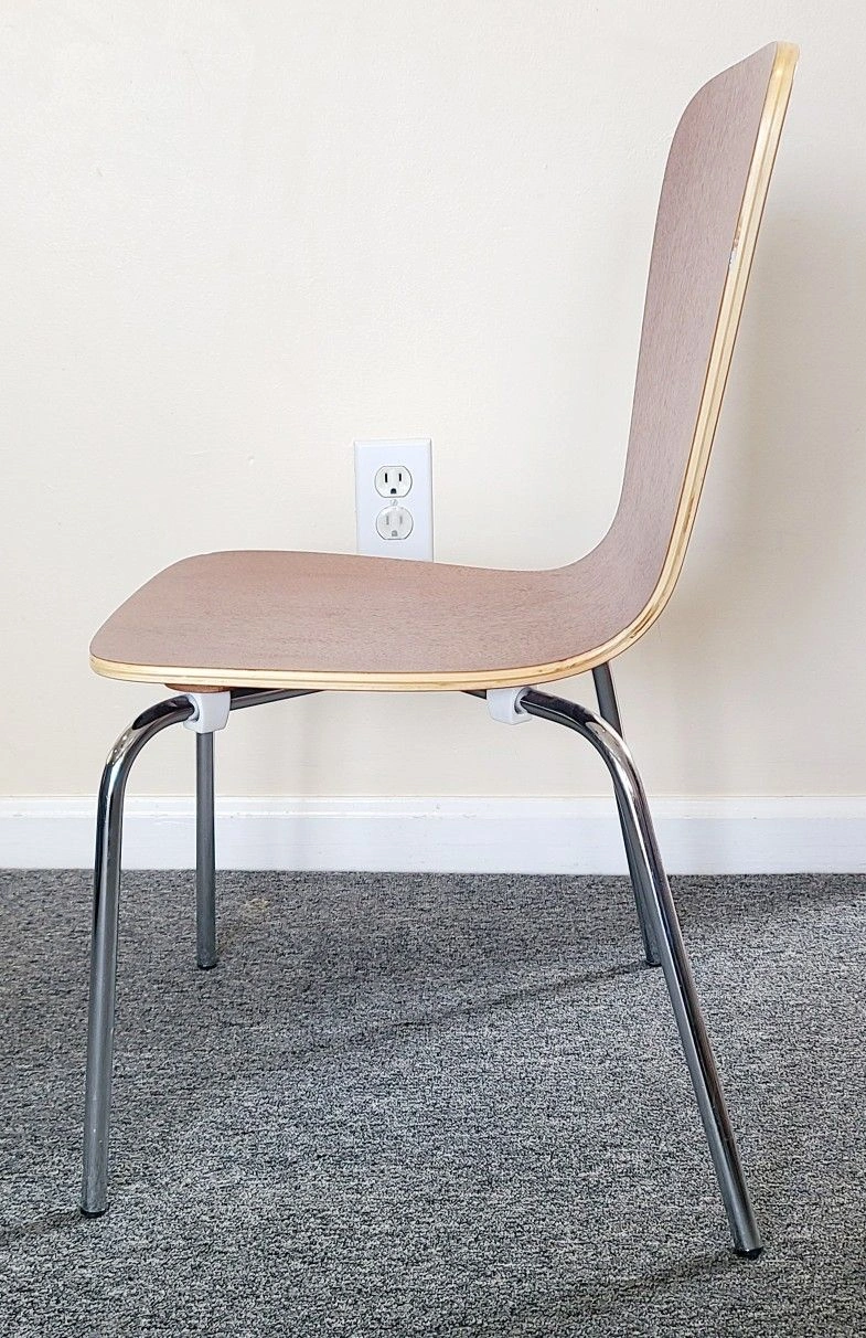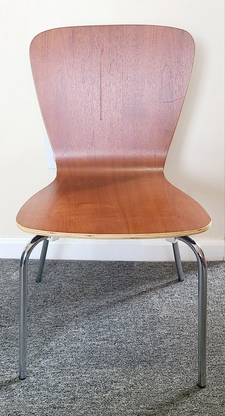 Stylish and durable children's dining chair with a sleek wood seat and chrome legs, perfect for contemporary home decor.