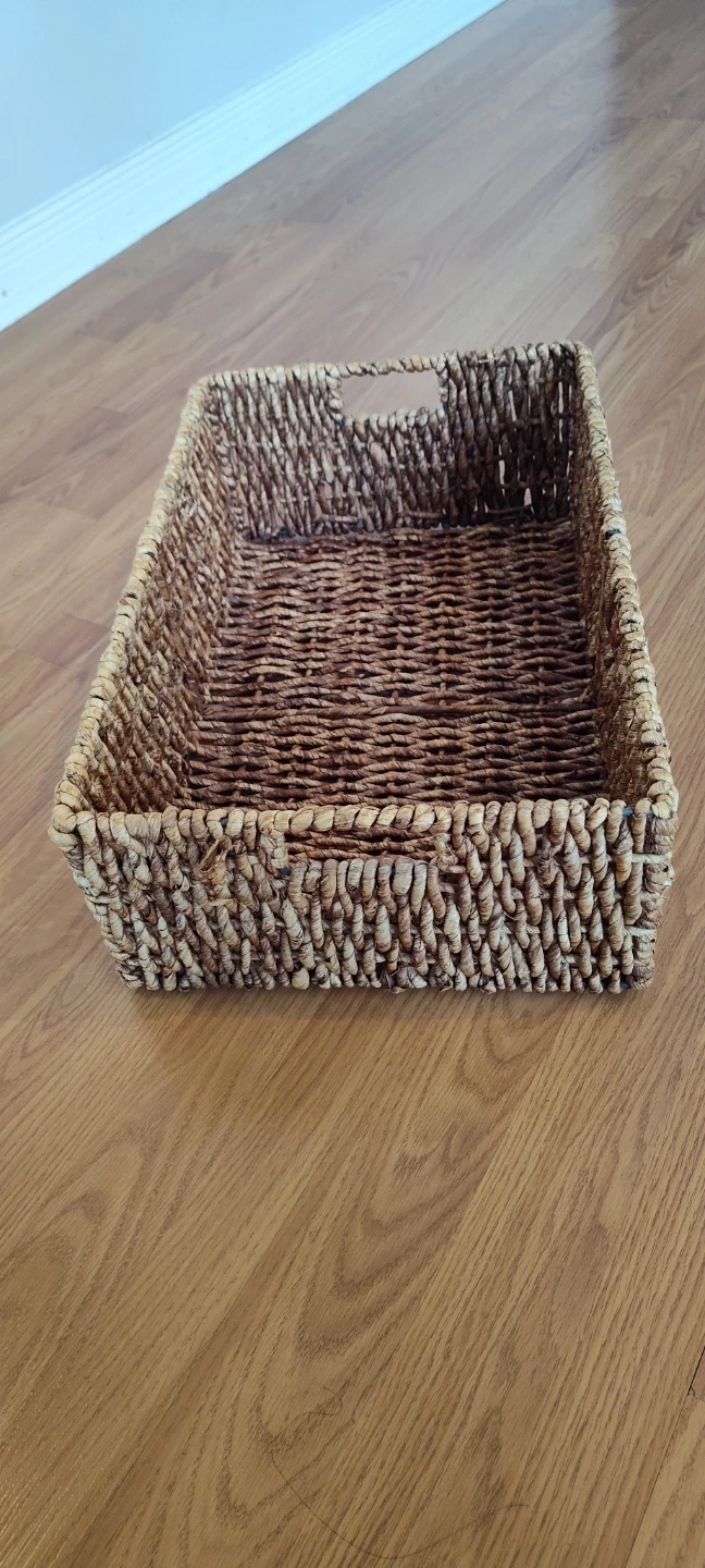 Here's a lovely woven storage basket, perfect for organizing your space! It's in great shape and ready to hold your items.
