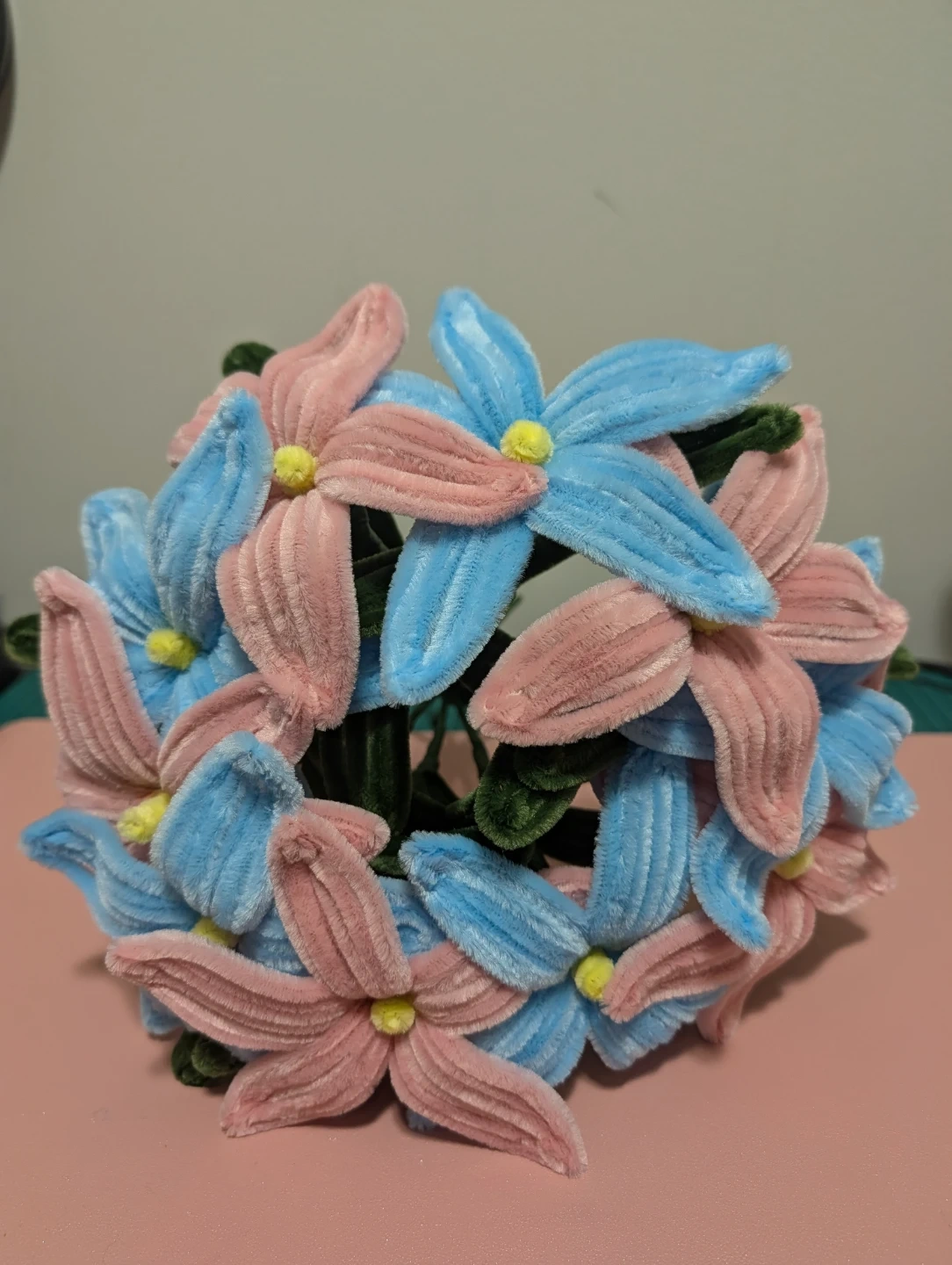 Handmade Pink & Blue Pipe Cleaner Flower Bouquet