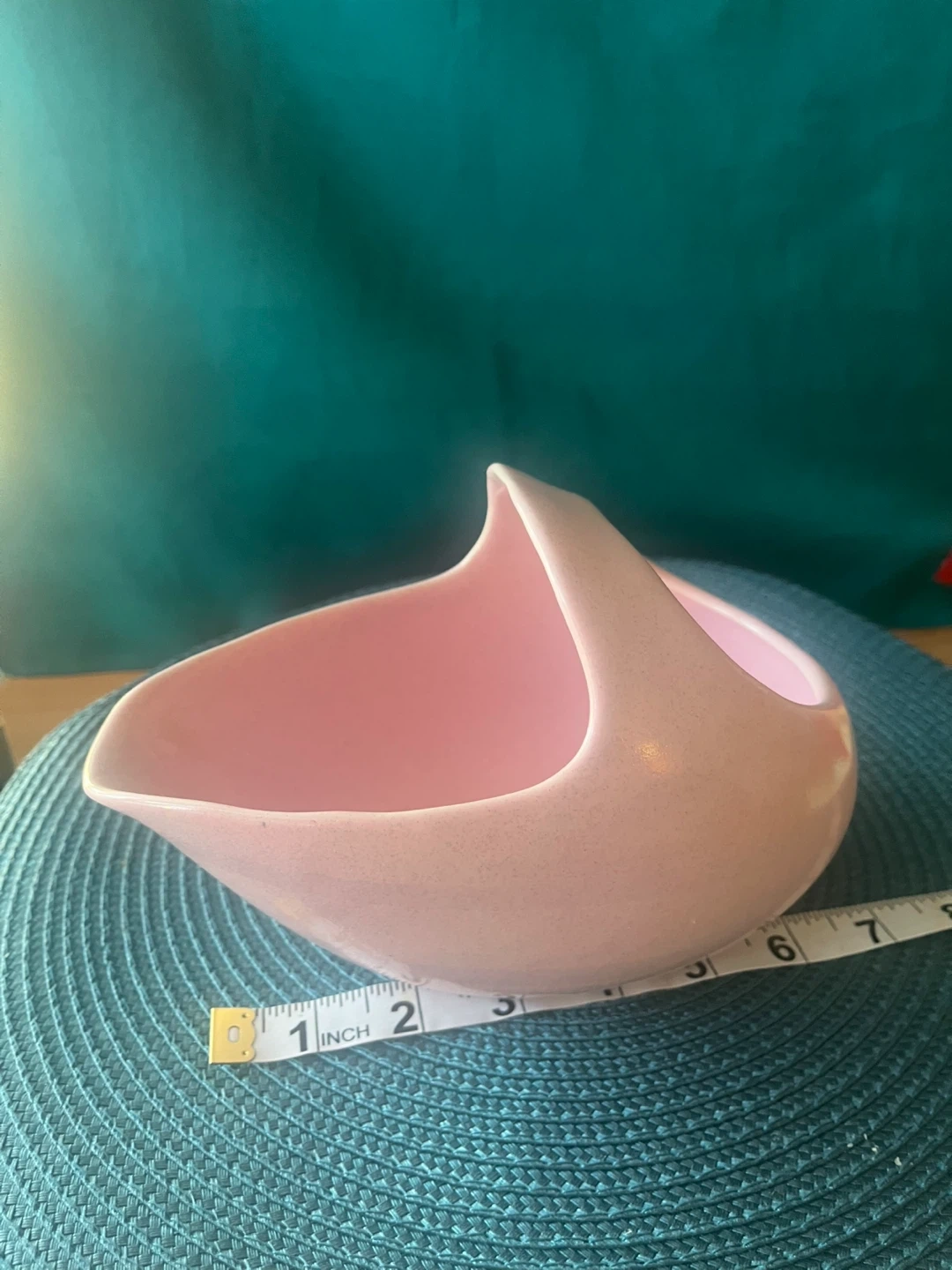 This is a cute pink ceramic basket!
