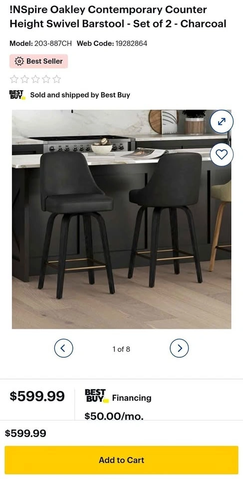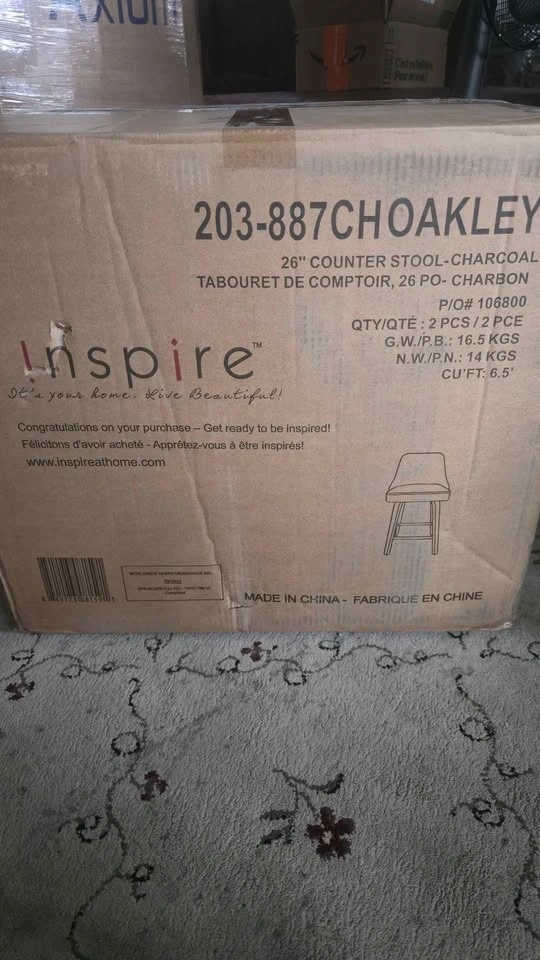 I have new in box NSpire Oakley Contemporary Counter Height Swivel Barstool - Set of 2 - Charcoal