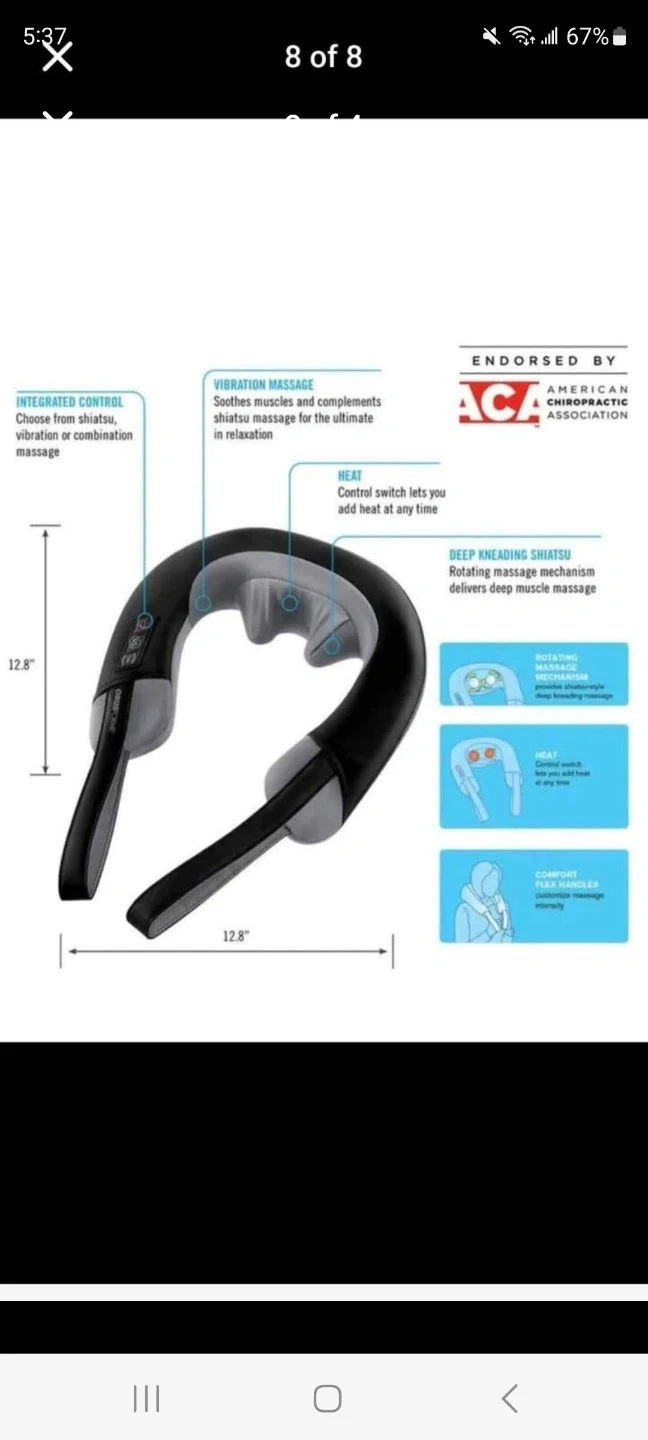 Get ready to say goodbye to neck tension with this ObusForme neck massager! It features vibration massage to soothe your muscles and heat control so you can add heat at any time. The deep kneading shiatsu mechanism delivers deep muscle massage, and the comfort flex handles let you increase the massage intensity. It also has integrated control for vibration or combination massage