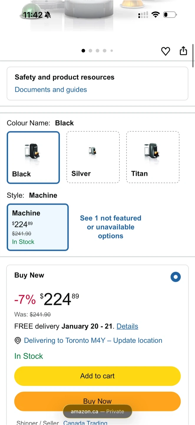 Selling a Nespresso Vertuo Next coffee machine in black. It's in great condition. Selling because I’m moving. Now online is $224.89.