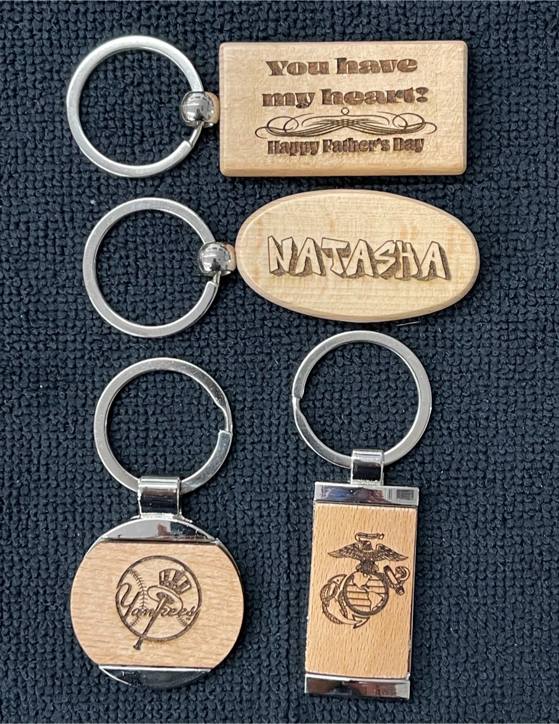 Selling a variety of handmade wooden keychains. Each one has a unique design customized to your liking.