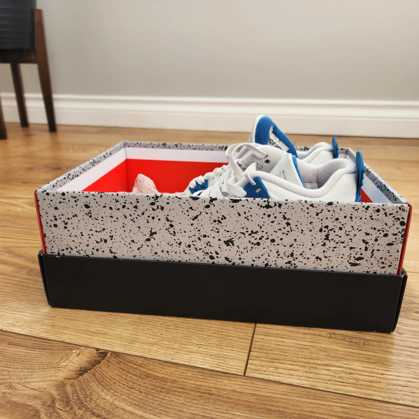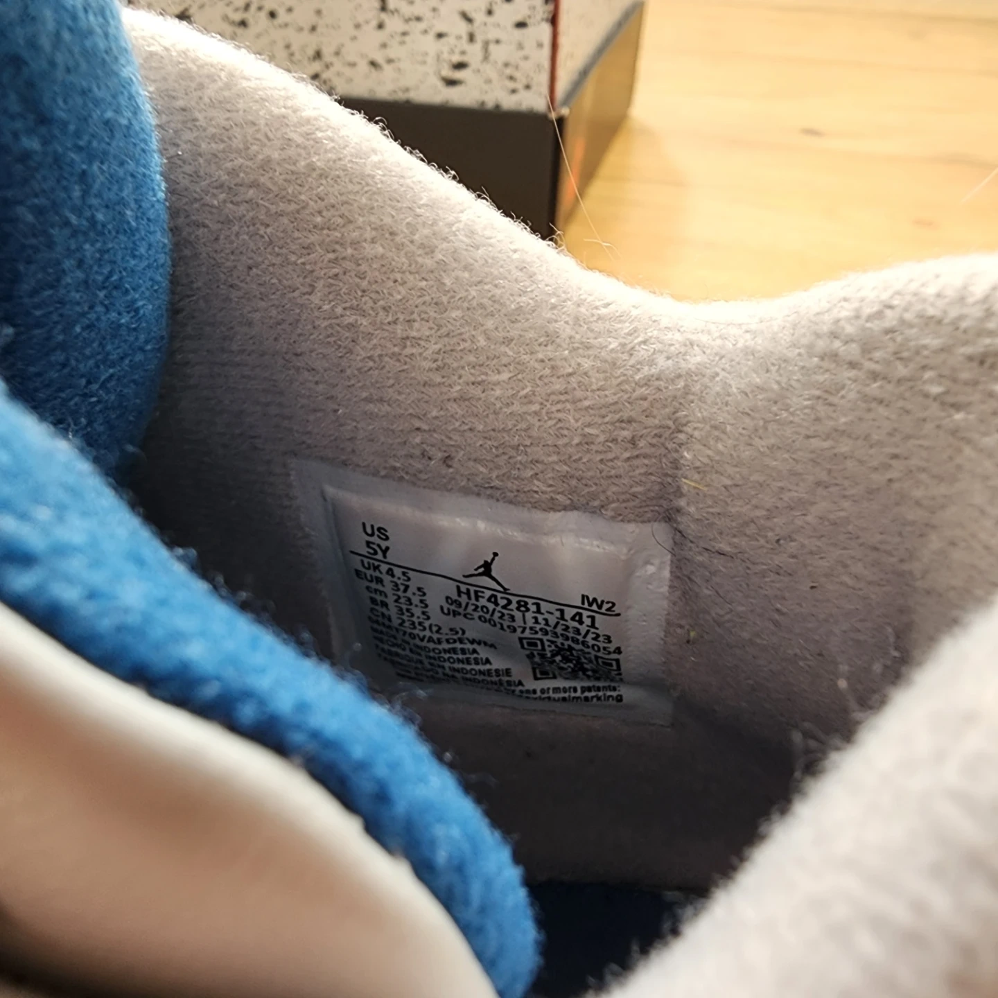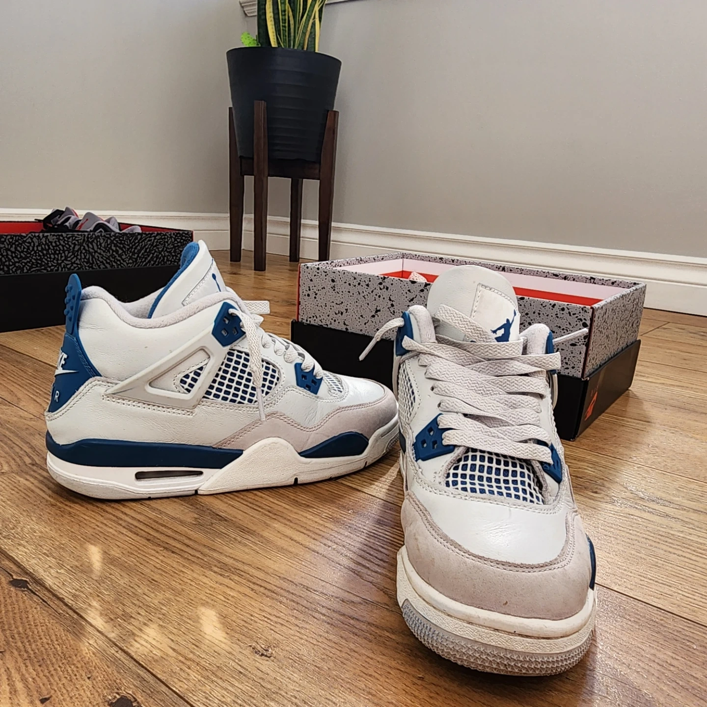 Selling a pair of Nike Air Jordan 4 Retro sneakers in white and blue! They come with the original box and are in great condition. A stylish addition to any sneaker collection!