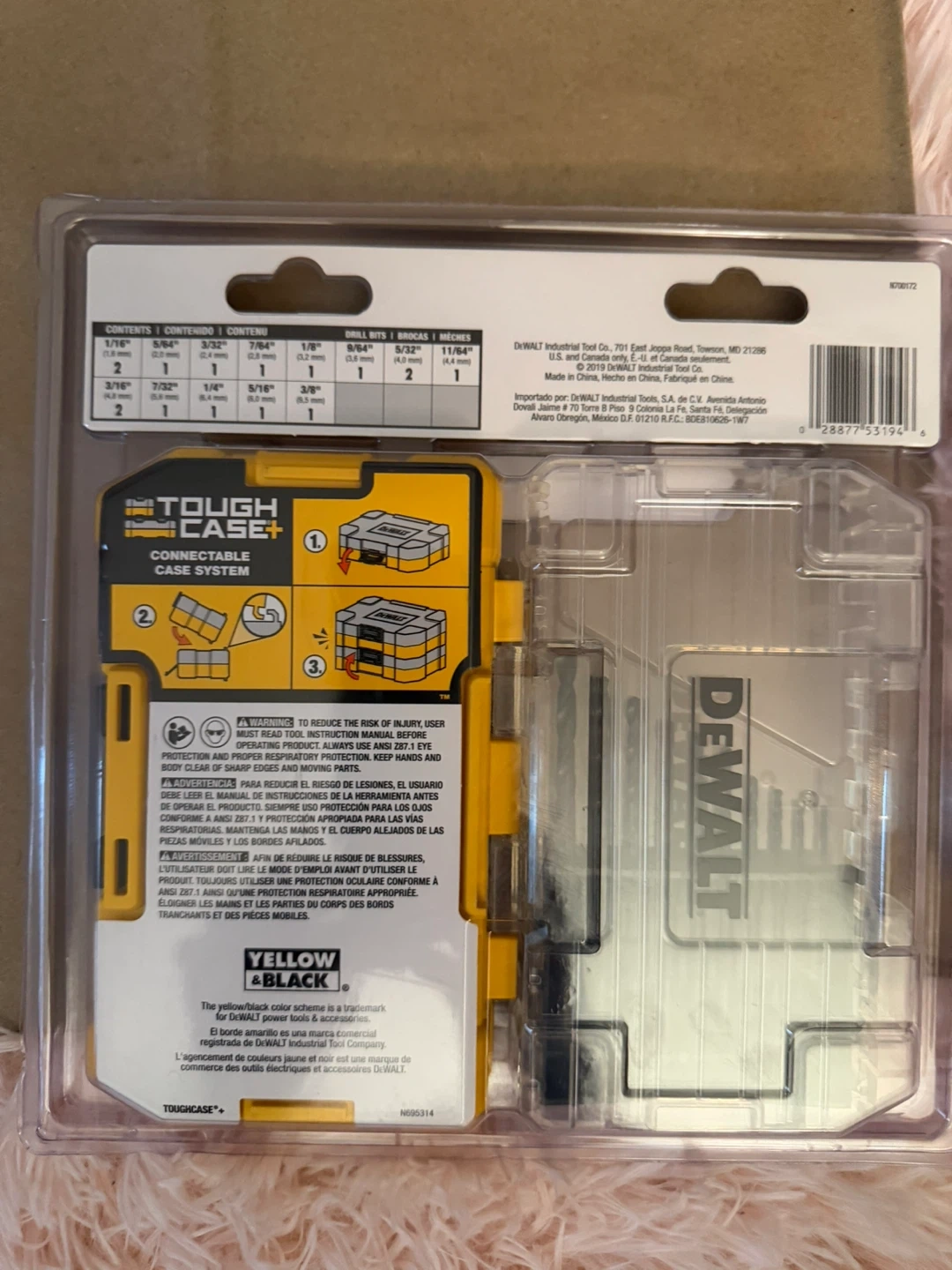 Selling a new 16-piece DeWalt Black Oxide drill bit set. It's a general-purpose set with a tough case+ connectable case system! Perfect for various drilling needs!