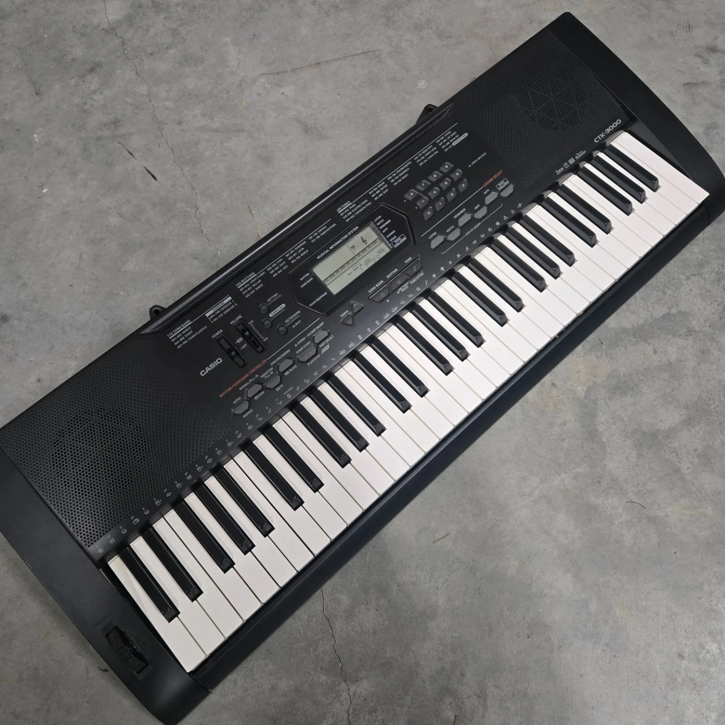 Selling a Casio CTK-3000 keyboard! It features 110 Song Bank, 150 Rhythms, and 400 Tones to help you explore your musical side. The keyboard also has a Musical Information System to help you learn and practice. Perfect for beginners or anyone looking to have some fun making music.