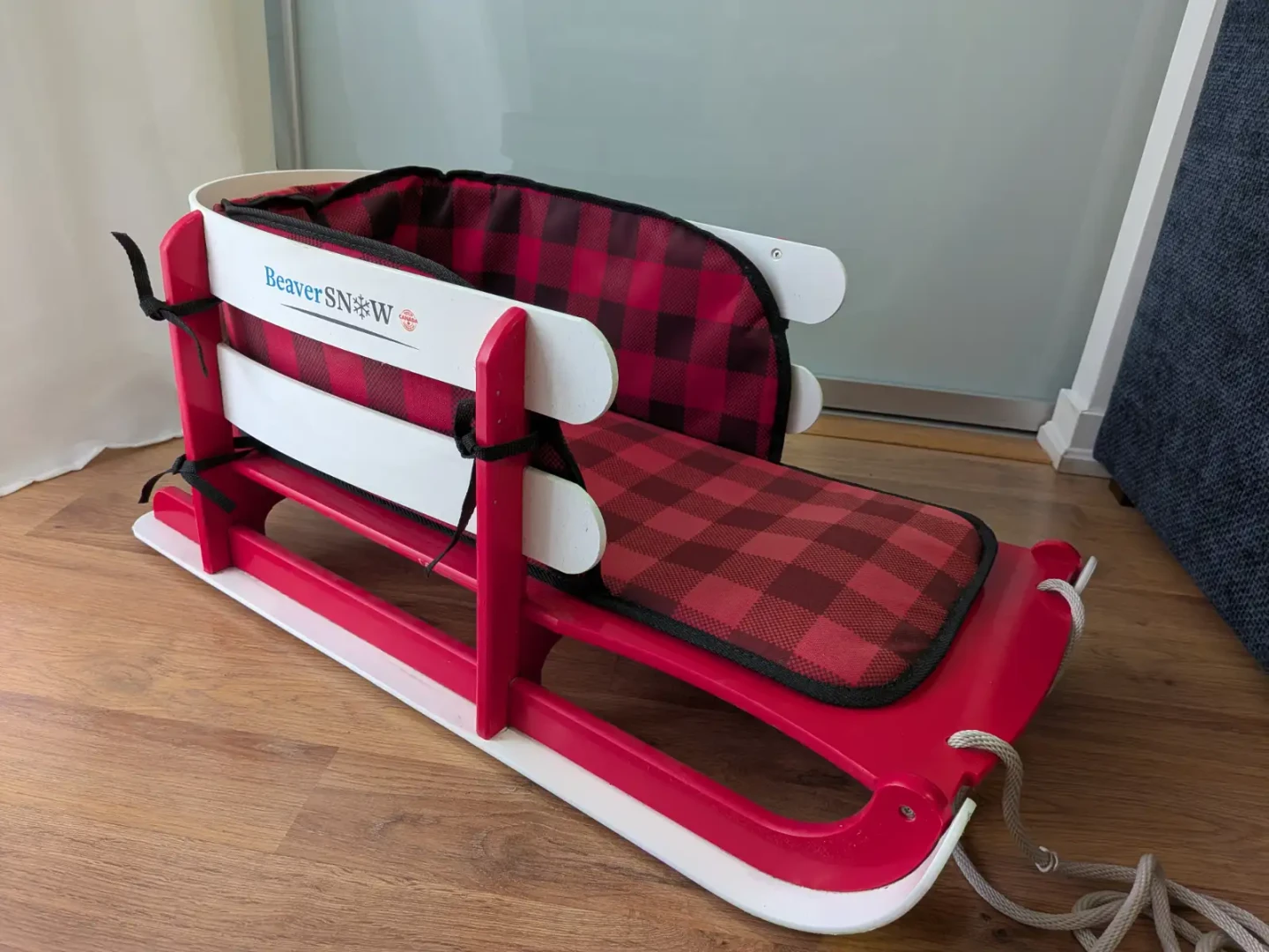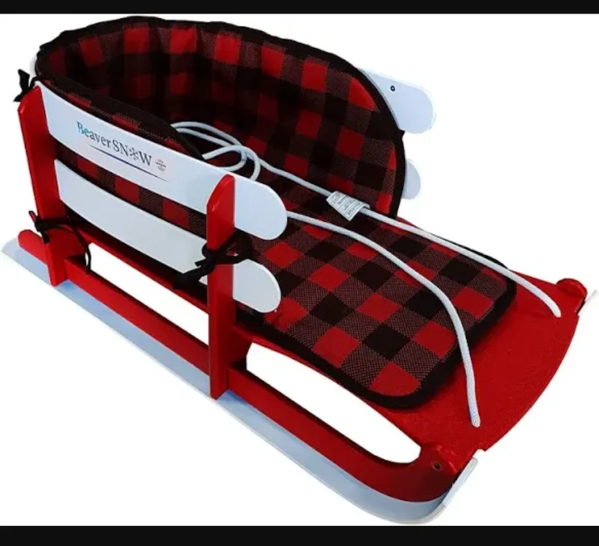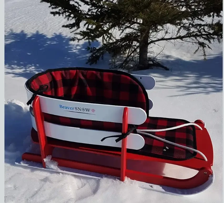 Beaver Snow Baby Sleigh with Buffalo Plaid Cushion