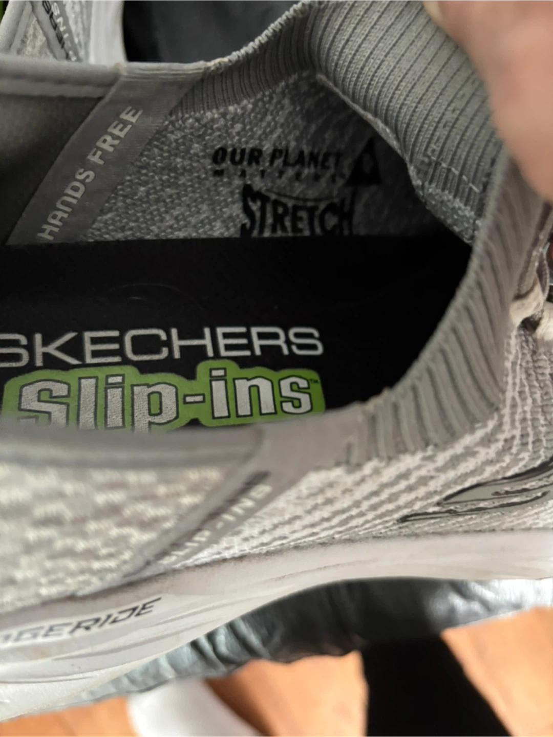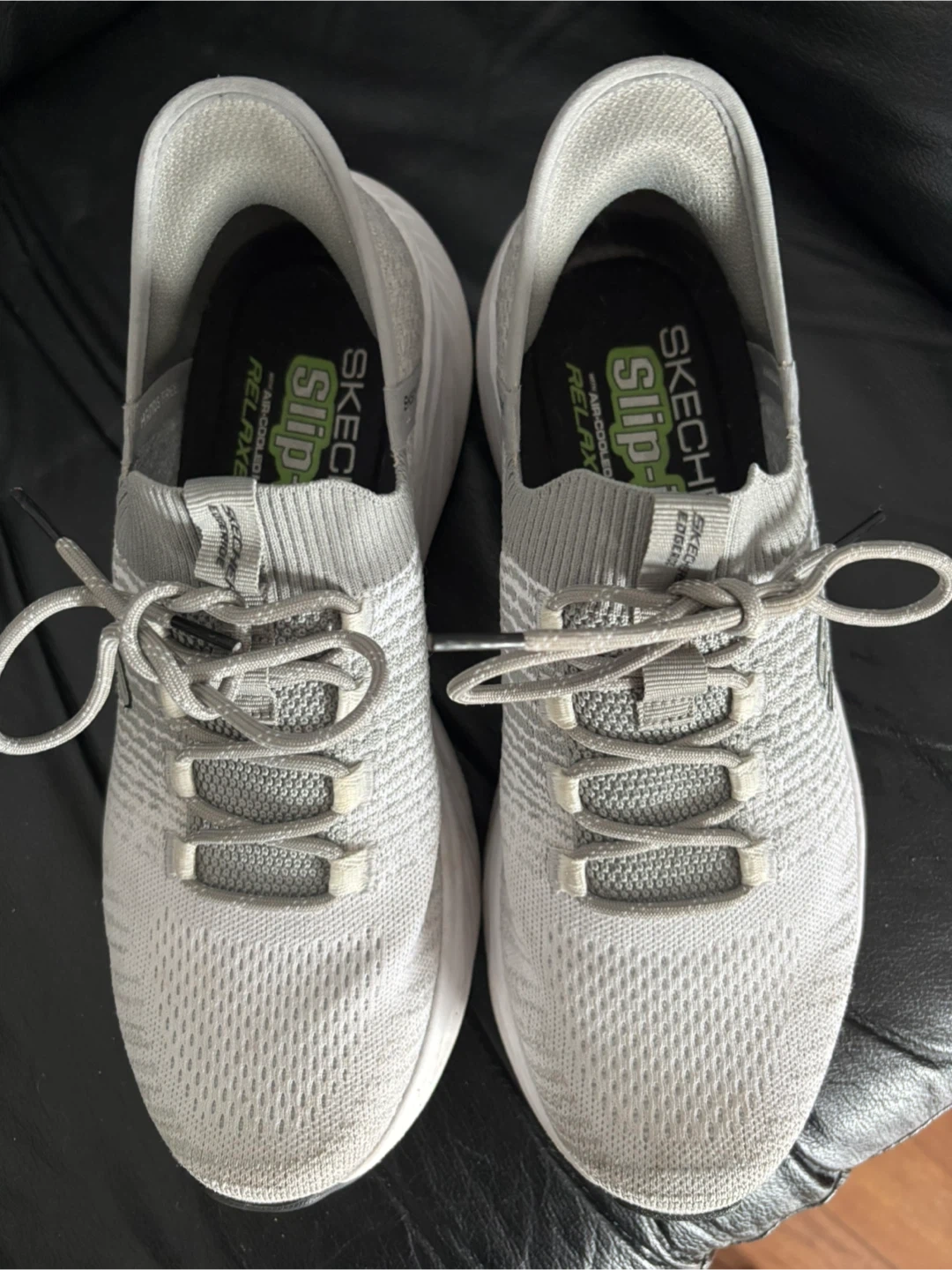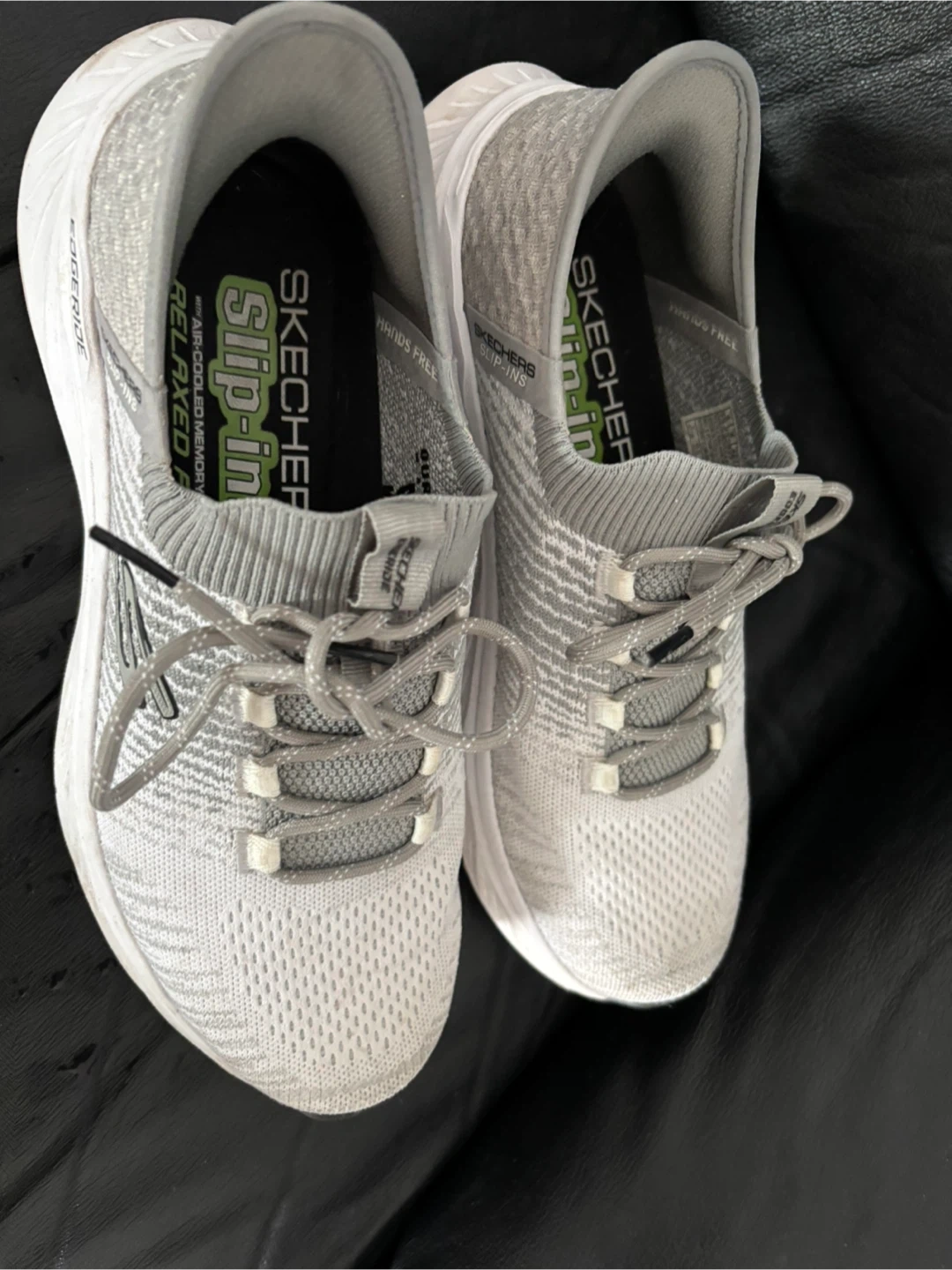 Skechers Slip-ins Relaxed Fit: Edge Ride sneakers in a men's size 9. They feature Skechers Air-Cooled Memory Foam for added comfort and a hands-free design for easy wear. Like new