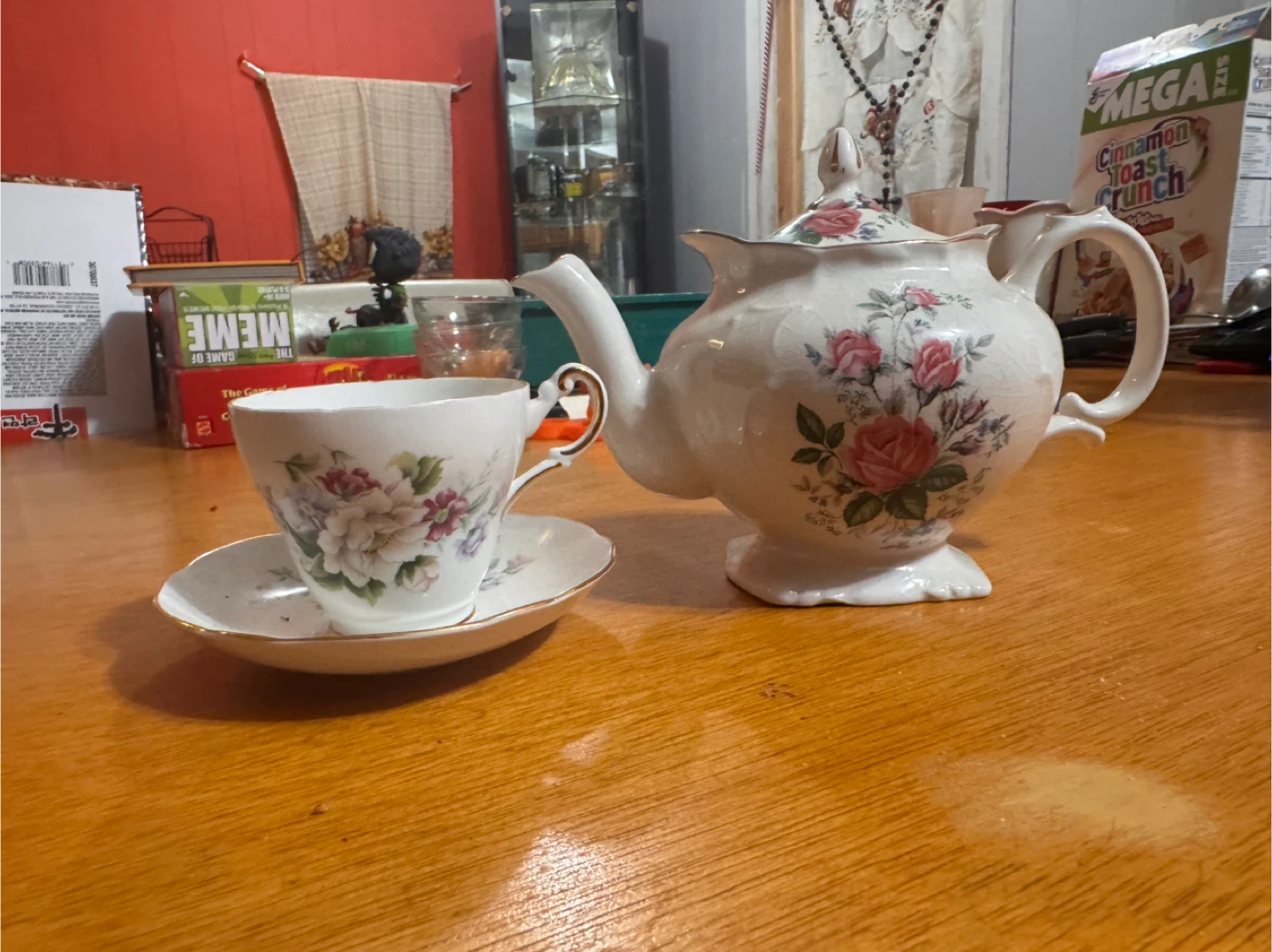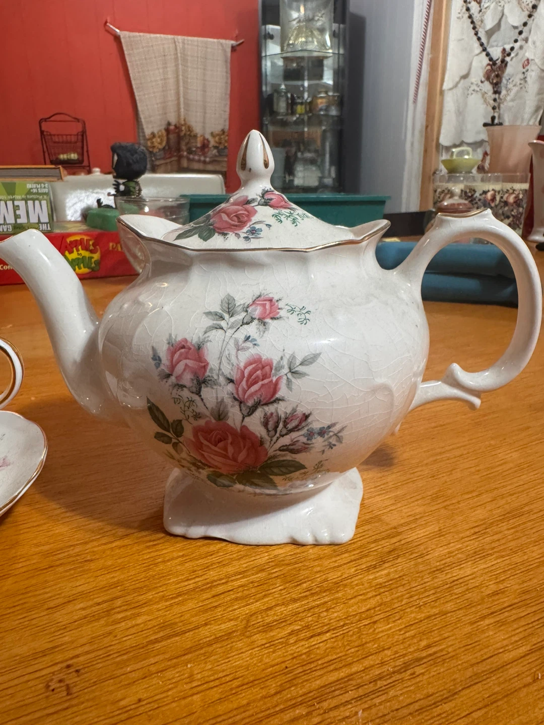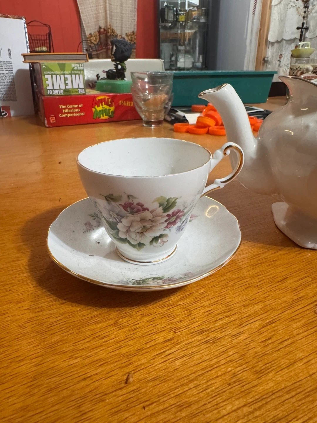 Selling a lovely vintage tea set featuring a floral design. Includes a teacup, saucer, and teapot. Perfect for tea time or as a decorative piece!