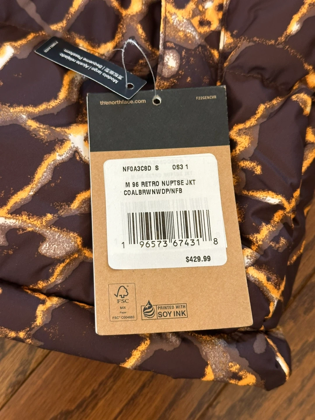 The North Face M 96 Retro Nuptse Jacket in size small. The colour is Coal Brown/WDP/NFB. Retails for $429.99