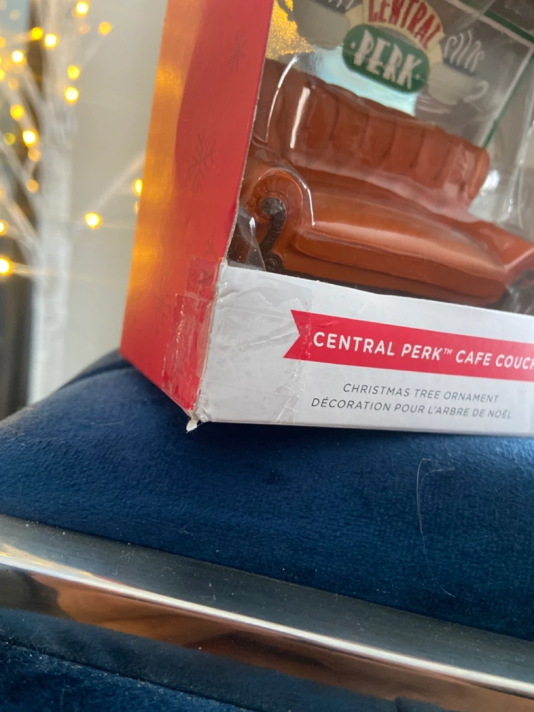 Here's a Hallmark Christmas tree ornament of the Central Perk cafe couch from the TV series Friends!
