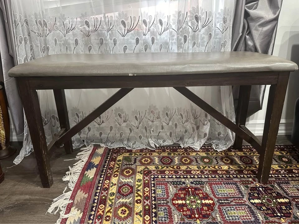4 dining chairs comes with solid wood brown table with bench- $250