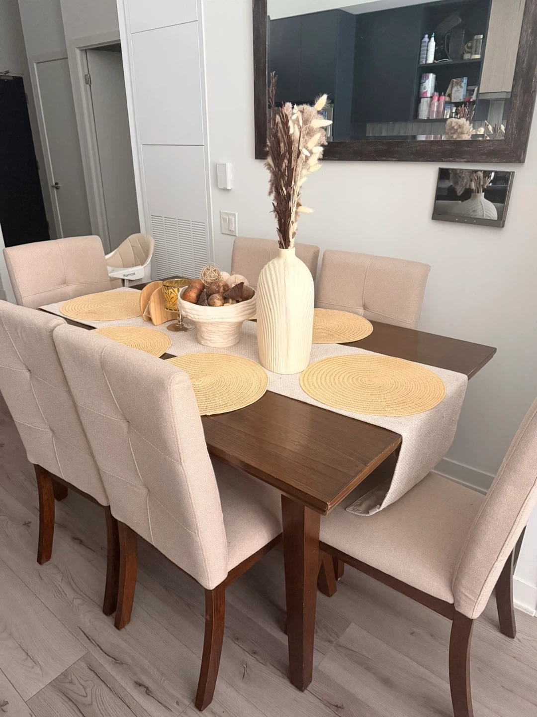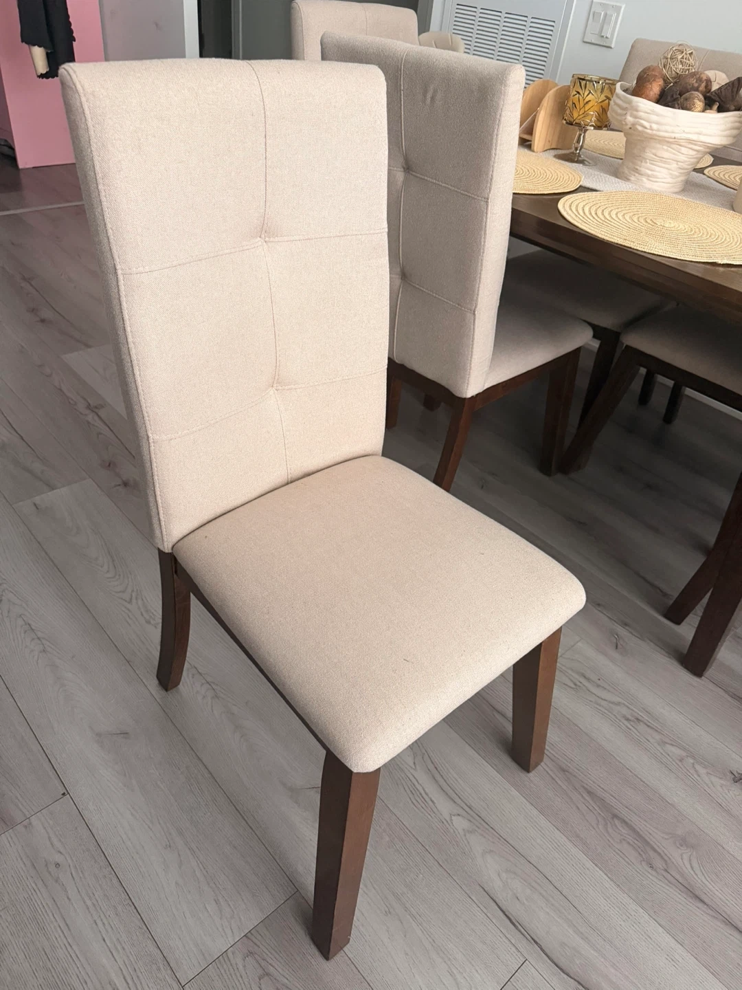 Set of dining table chairs in excellent condition, used for only 1 year. They are like new, very sturdy, clean, and well maintained.