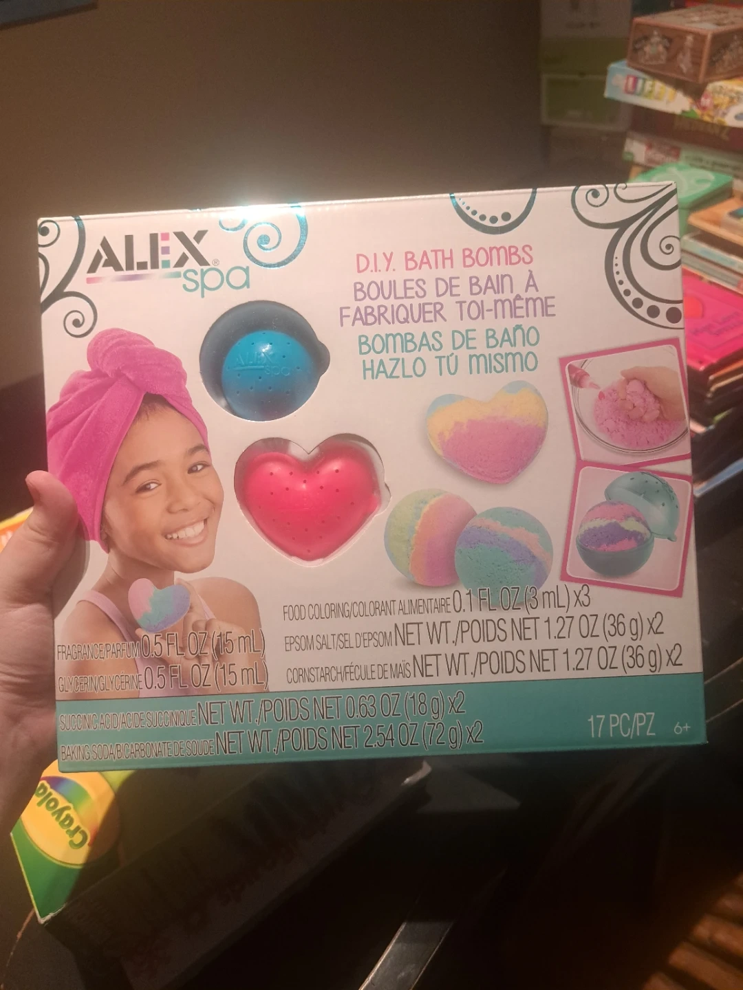 Get creative with this ALEX Spa D.I.Y. Bath Bombs kit! It's a 17-piece set perfect for making your own bath bombs at home. Includes ingredients like fragrance, food coloring, epsom salt, glycerin, cornstarch, succinic acid, and baking soda. Recommended for ages 6+