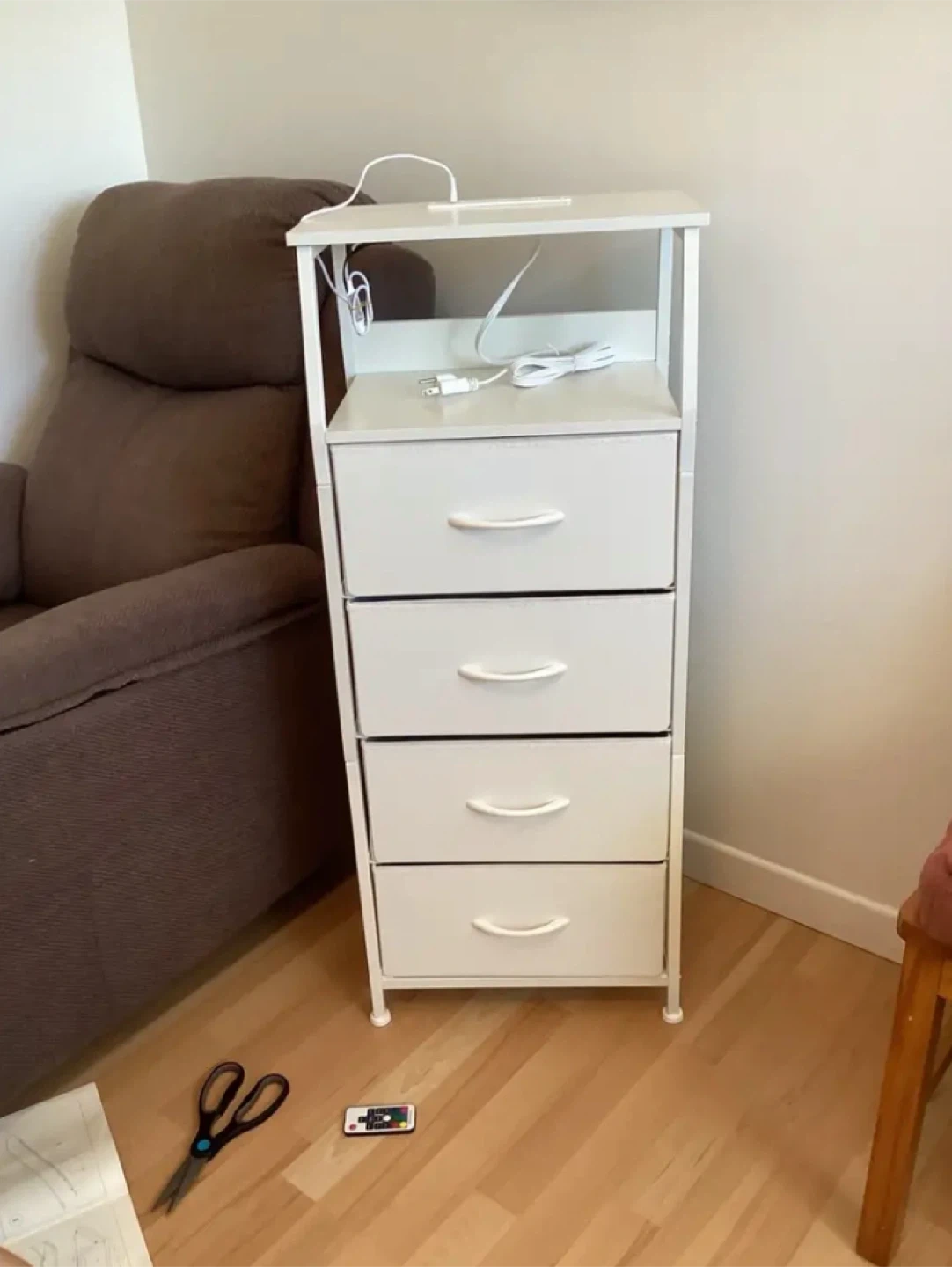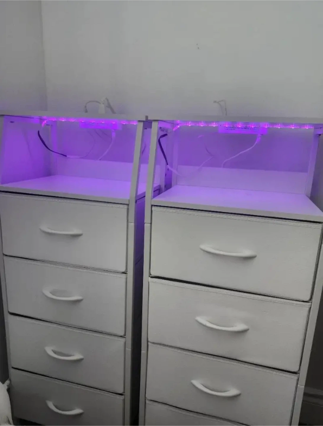 Selling a BRAND NEW white 5-drawer dresser, perfect for adding some extra storage to your bedroom or living space! It features a built-in LED light strip with 20 colours and 19 dynamic modes, all controllable with a remote. There are also 10 speed modes and 5 brightness modes. Also includes 2 AC outlets (120V/12A), 2 USB ports (5V/3A), and a 6.5-foot power cord, so you can charge your devices right on the dresser. The box is included!