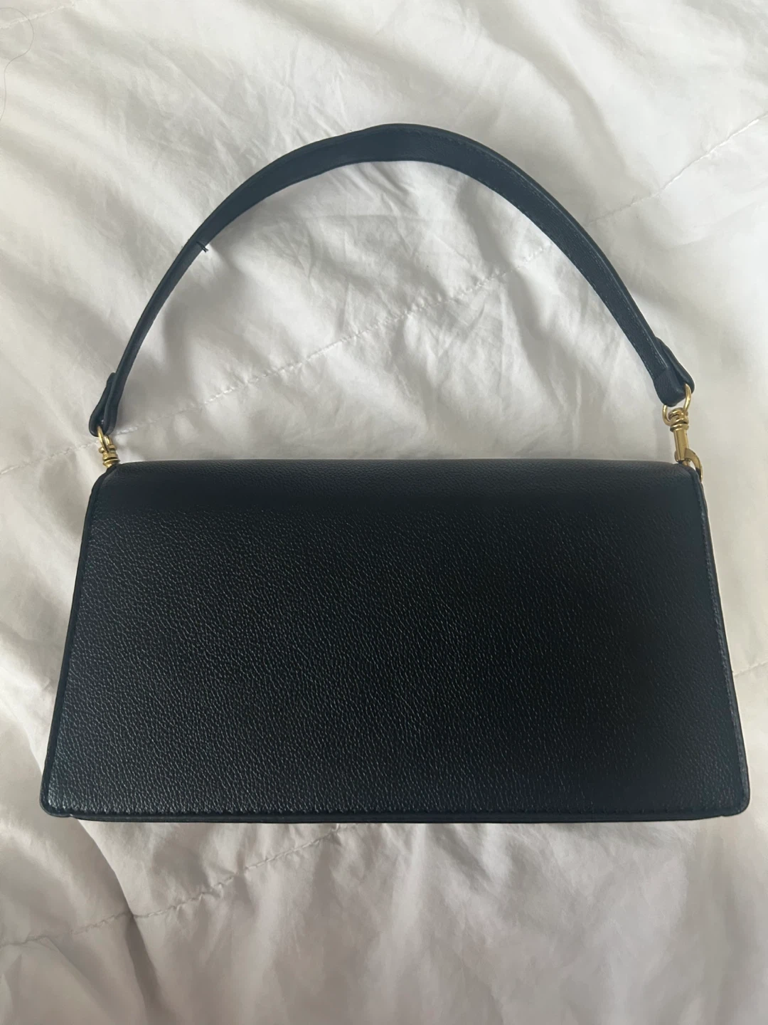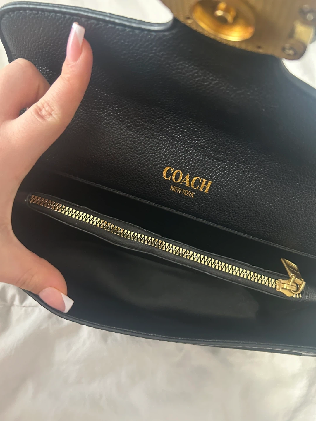 Selling a stylish black Coach Cary Shoulder Bag. It's in great condition and perfect for everyday use! Features a sleek design with a gold-tone zipper and the classic Coach logo.