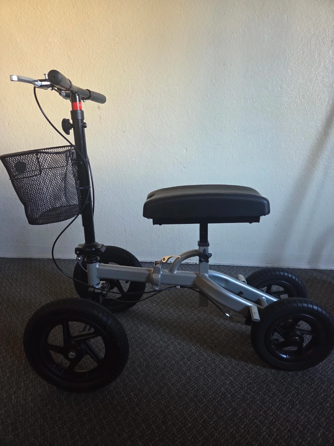 Selling a knee walker scooter in good condition. It has a basket and adjustable seat. Great for getting around while recovering from a foot or ankle injury