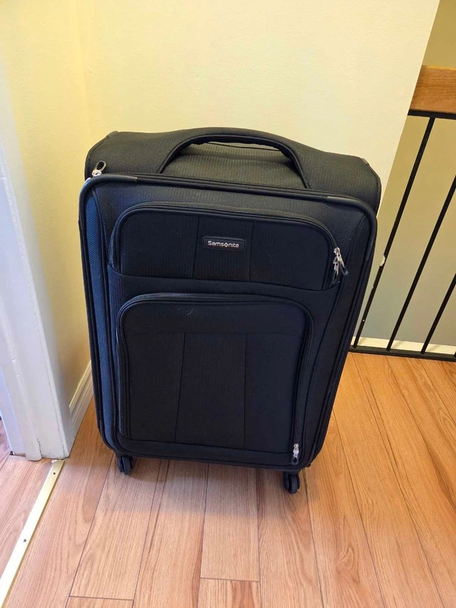 This is a Samsonite carry-on luggage, perfect for your next trip! It's in used condition, but has plenty of life left. * Durable construction * Telescoping handle * Smooth-rolling wheels * Multiple compartments for organization This little suitcase has seen a few airports, but it's ready for more adventures. Grab it before it flies away! If the ad is up, it's available!
