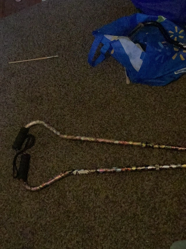 I am selling a pair of used canes, perfect for anyone needing a bit of extra support with a touch of personal style. These canes have been lovingly decorated, adding a unique flair to a practical mobility aid. They show signs of wear, which only adds to their story! I am selling them for $5 each. If the ad's still kickin', the canes are still up for grabs!