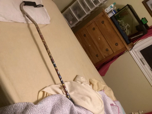 This is a used walking cane that is in good condition, ready to assist with mobility and stability. This cane features a comfortable grip and sturdy construction. I'm parting ways with this walking cane, hoping it finds a new home where it can continue to be of assistance. It has served me well, offering support and stability when needed. Don't miss out on the opportunity to own this reliable walking cane. Additional details include: