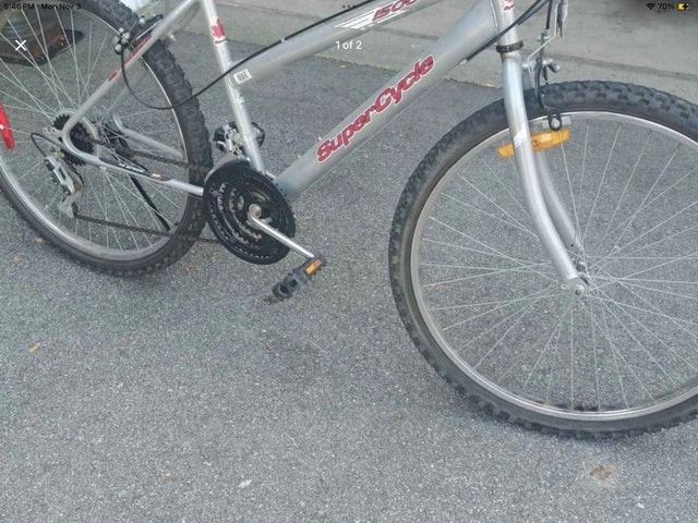 I'm selling a SuperCycle 1500 mountain bike, great for trails or city commuting. This bike has been used but is still in good condition, ready for its next adventure!
