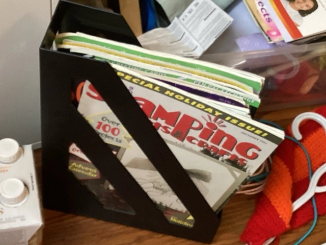 Keep your magazines neatly organized with this sleek, black magazine holder; it's the perfect addition to any home or office space. This magazine holder is in used condition. It comes with the magazines I'm decluttering and it needs to go to a new home! If the ad is still up, it's still available!