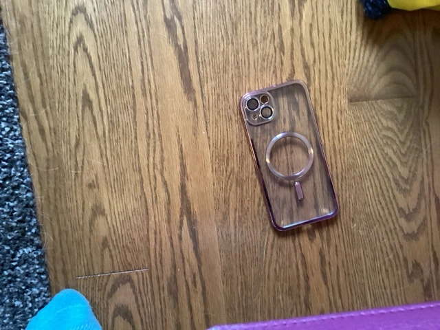 This clear iPhone case with a MagSafe ring is in used condition. It shows signs of wear but still offers reliable protection and functionality for your device. Add a touch of sparkle and keep your phone safe. If the ad is up, it's available! Let me know when you can pick it up!