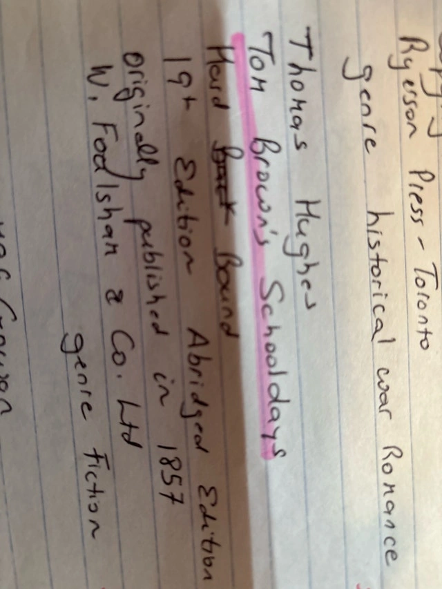 This is a hardcover, abridged, 19th edition of the historical war romance novel, Tom Brown's Schooldays, by Thomas Hughes. It was originally published in 1857 by Ryerson Press in Toronto. This book is in good condition for its age. It has some wear and tear on the cover and spine. The pages are yellowed, but the text is still legible. A wonderful addition to any bookshelf! If the ad is up, then it's available. I'm getting ready to move and need to clear out some space.