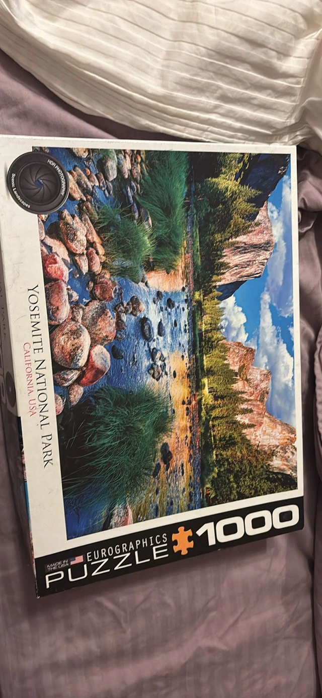 Dive into the beauty of Yosemite National Park with this Eurographics 1000-piece jigsaw puzzle, perfect for puzzle enthusiasts and nature lovers alike. This is a used puzzle in good condition. Once assembled, you'll be transported to the serene landscapes of California. Missing one piece.