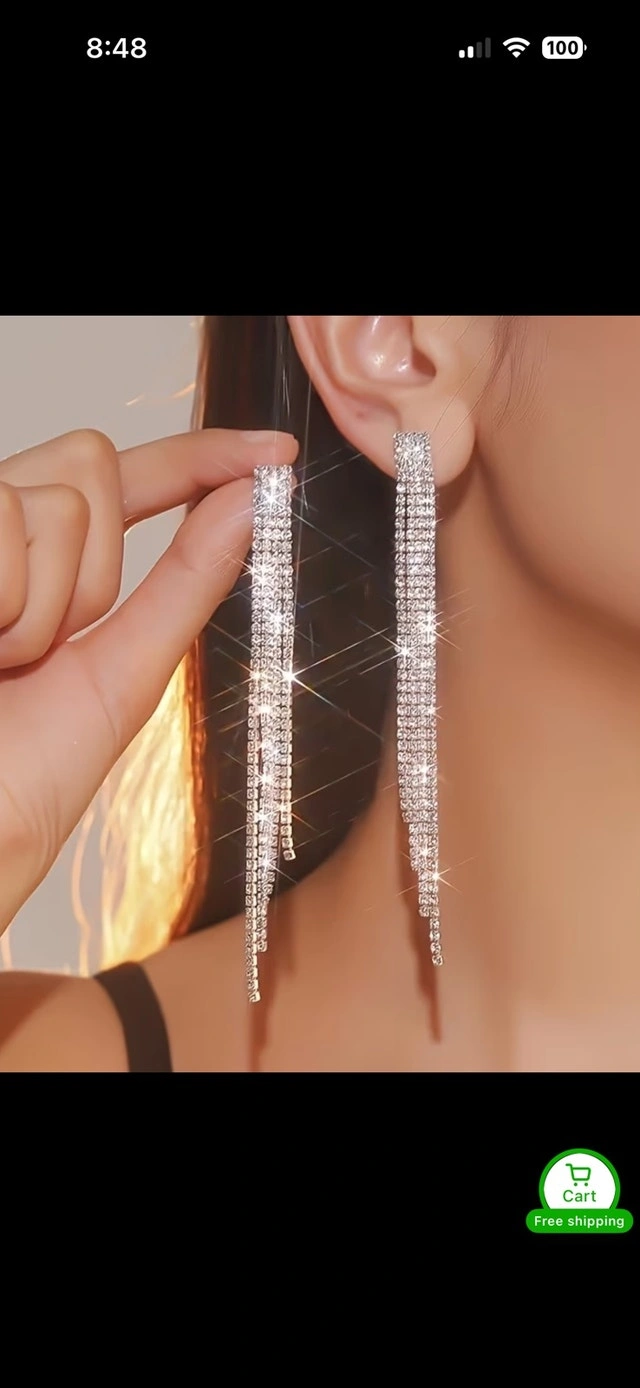 Add a touch of sparkle with these brand new rhinestone earrings, perfect for dressing up any outfit. These cascading earrings feature multiple strands of shimmering rhinestones that catch the light beautifully.