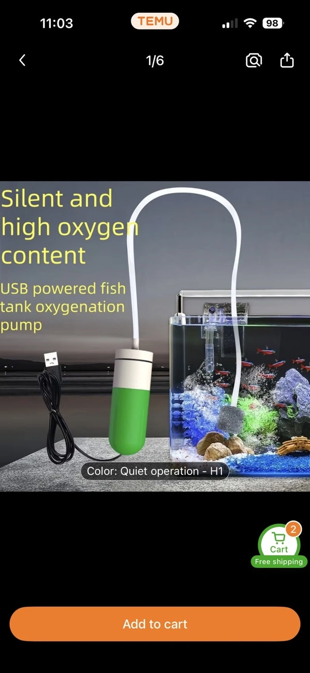 Keep your aquarium lively with this USB-powered fish tank oxygenation pump, designed for silent operation and high oxygen output, ensuring a healthy environment for your fish. This new pump is ready to improve your aquatic setup. Specifications: USB Powered Quiet Operation High Oxygen Content If the ad is up, the pump is ready to go!
