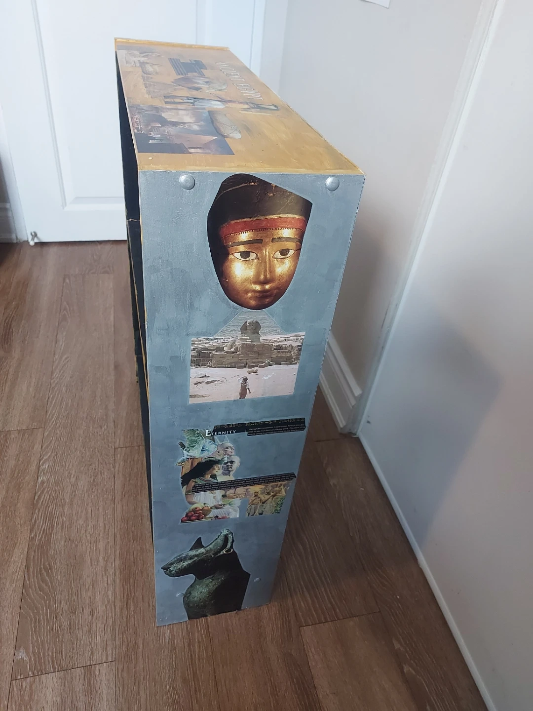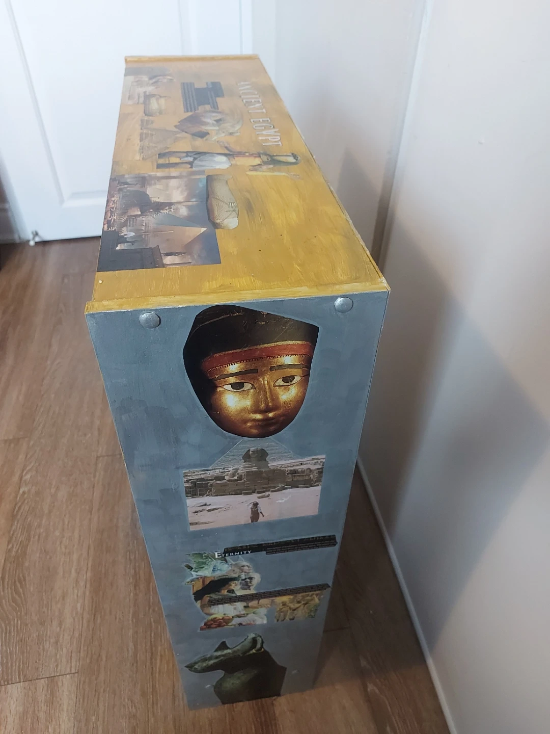 This is a custom made Ancient Egypt Book Shelf. It has a protective gloss coating on it to protect the finish. It can be used as functional furniture piece. (Book Shelf) Asking for $100. Delivery is possible for .70 cents per km if you live within a 40 km radius of East Hamilton.