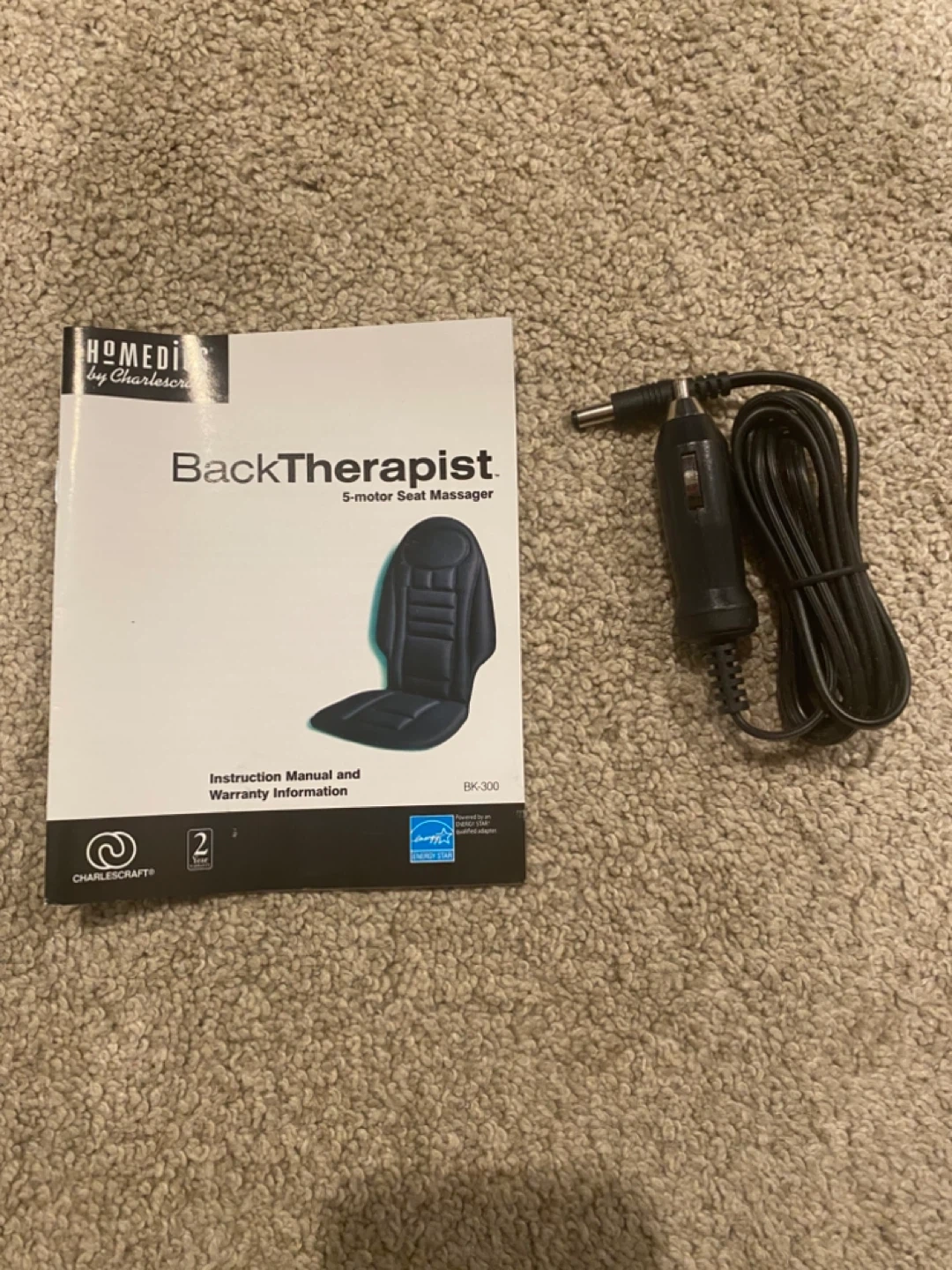 Selling a Homedics BackTherapist 5-motor seat massager! It comes with the instruction manual and car adapter. This turns any seat into a personal vibrating massager. It has 5 powerful motors that eliminate tension in your shoulders, back, and thighs. It also has a soothing heat to relieve tension in your lower back