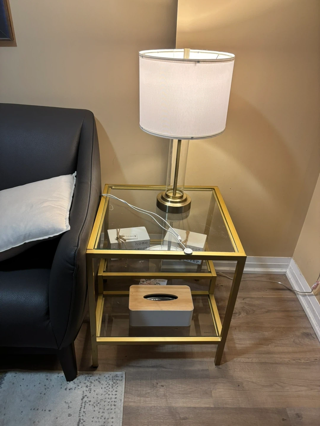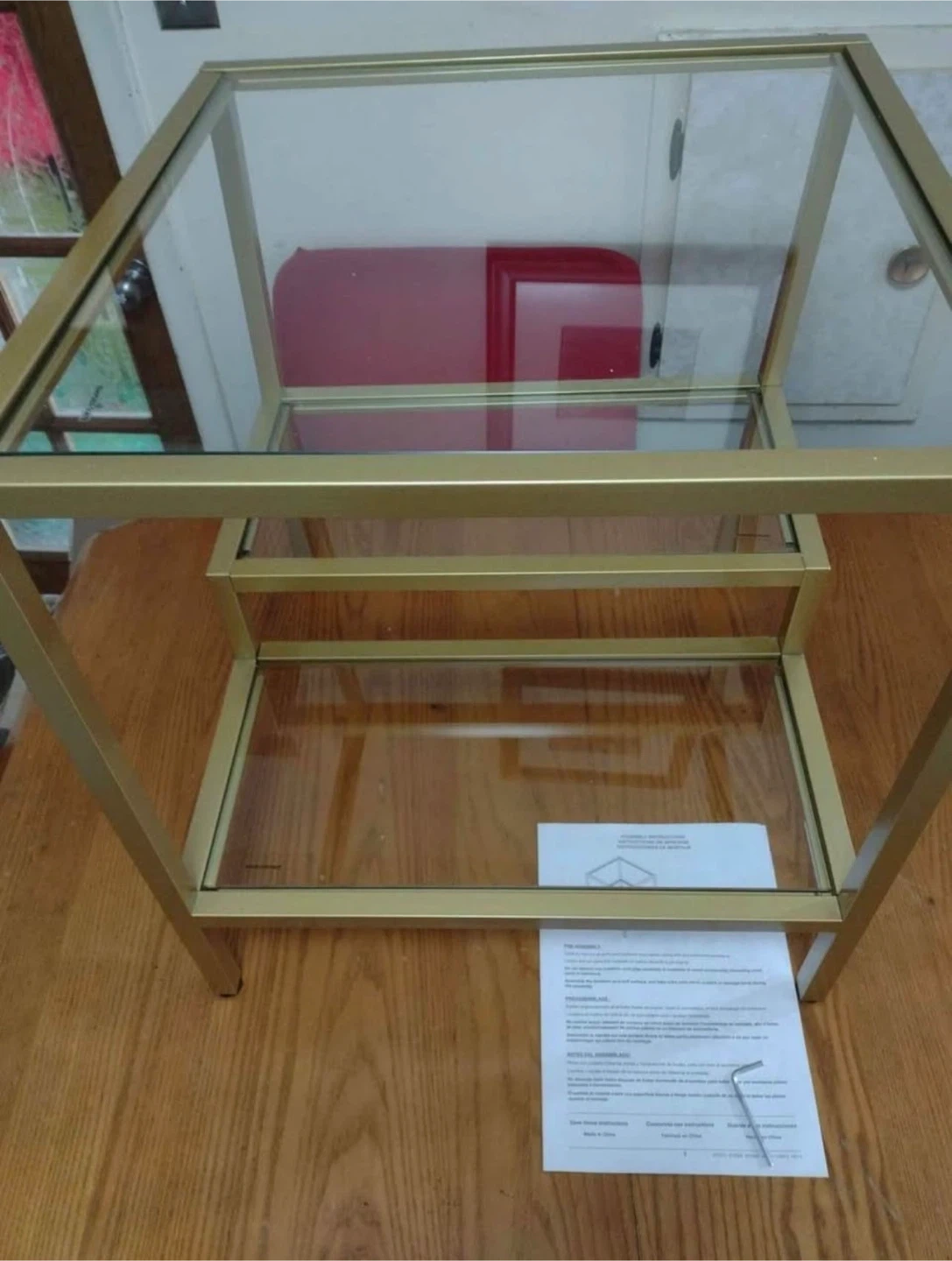 Gold Metal and Tempered Glass Side Table