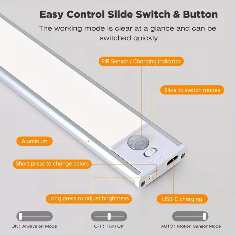Brand new Intelligent Light bar! This light is perfect for kitchens, cloakrooms, stairs, bathrooms, and hallways. It features easy magnetic installation: just snap onto, peel off, and paste!