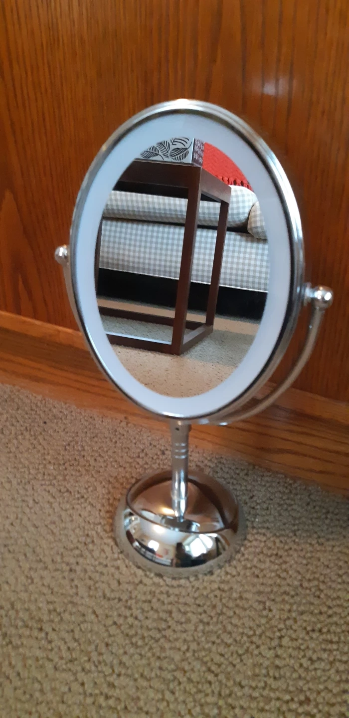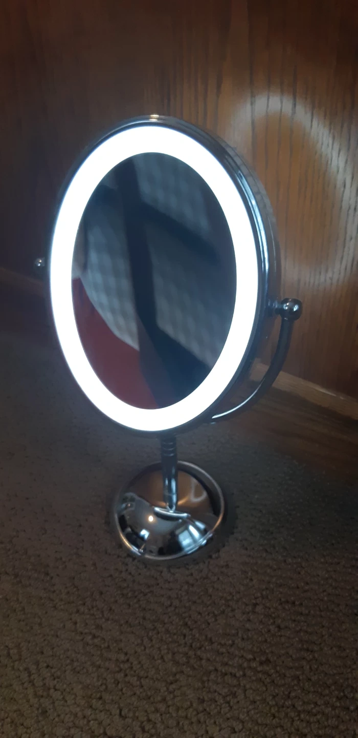 It's regular on one side and has magnification on the other, making it easy to apply makeup!