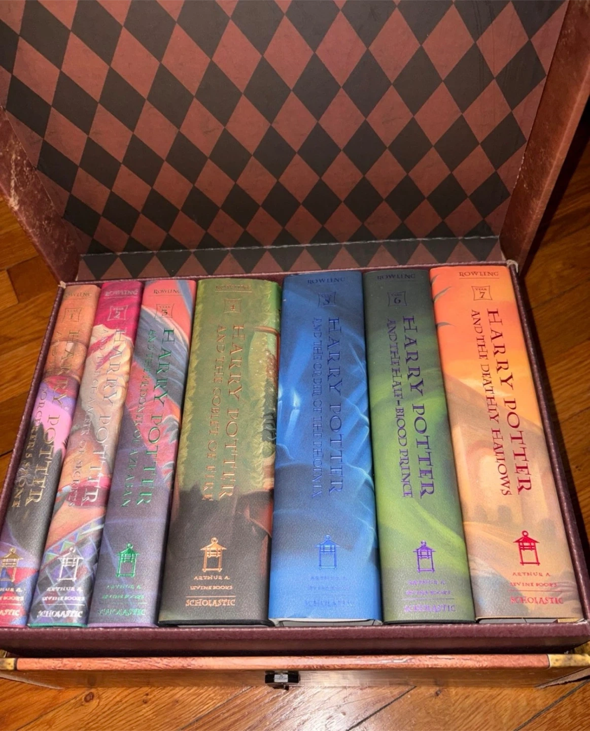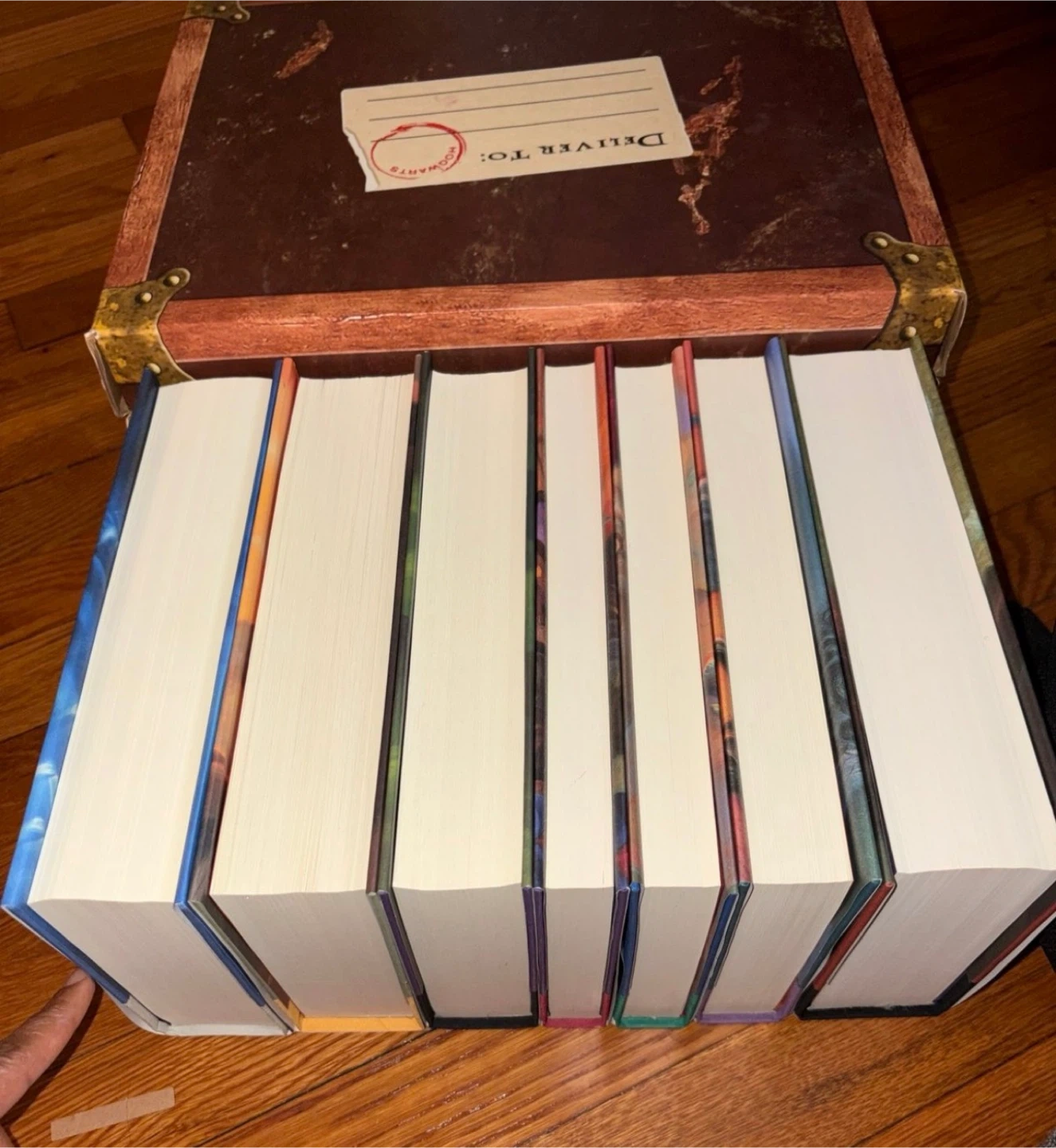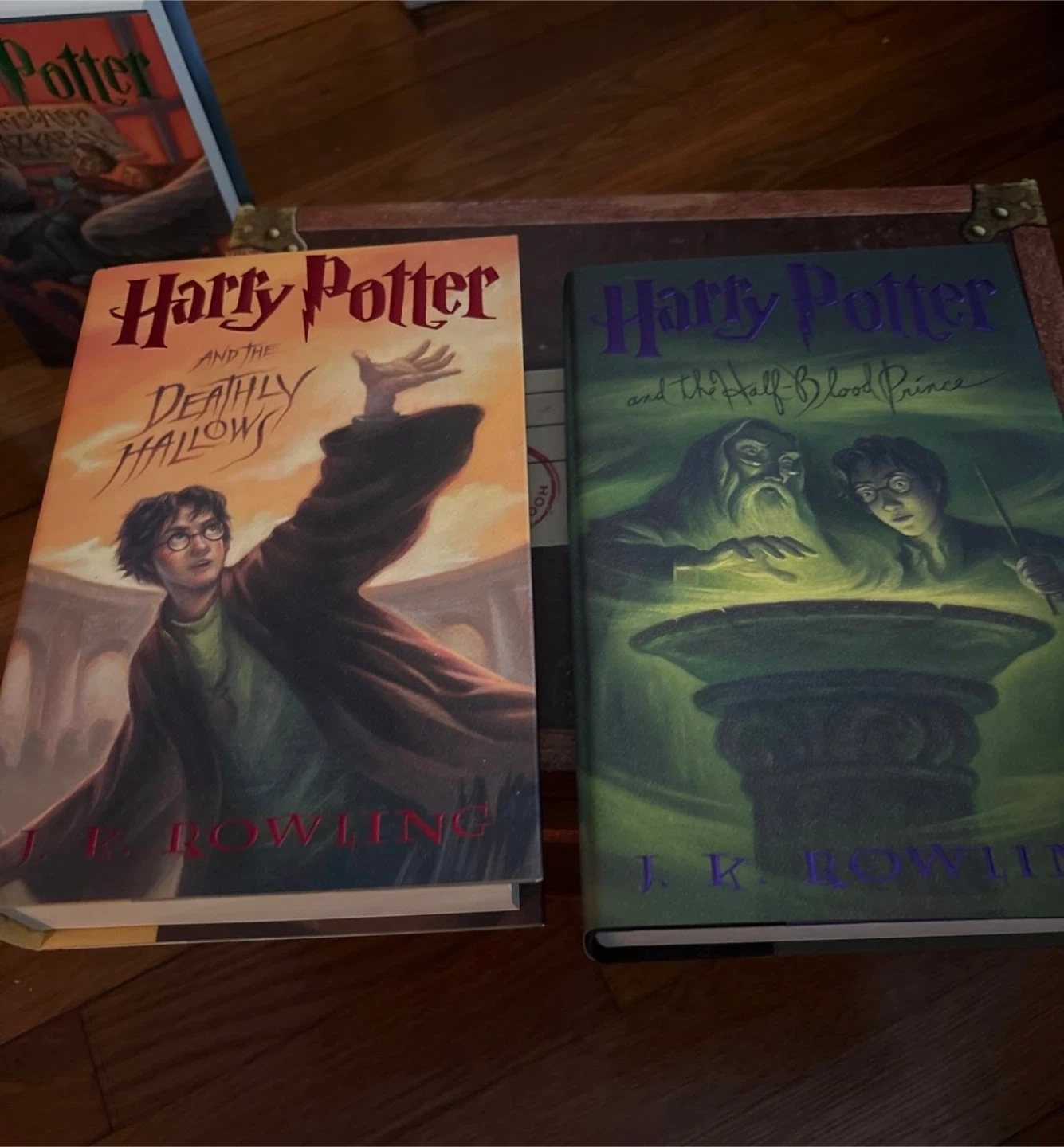 Selling a complete set of Harry Potter hardcover books! All seven books are included. They come in a decorative trunk-style box. Perfect for any Harry Potter fan