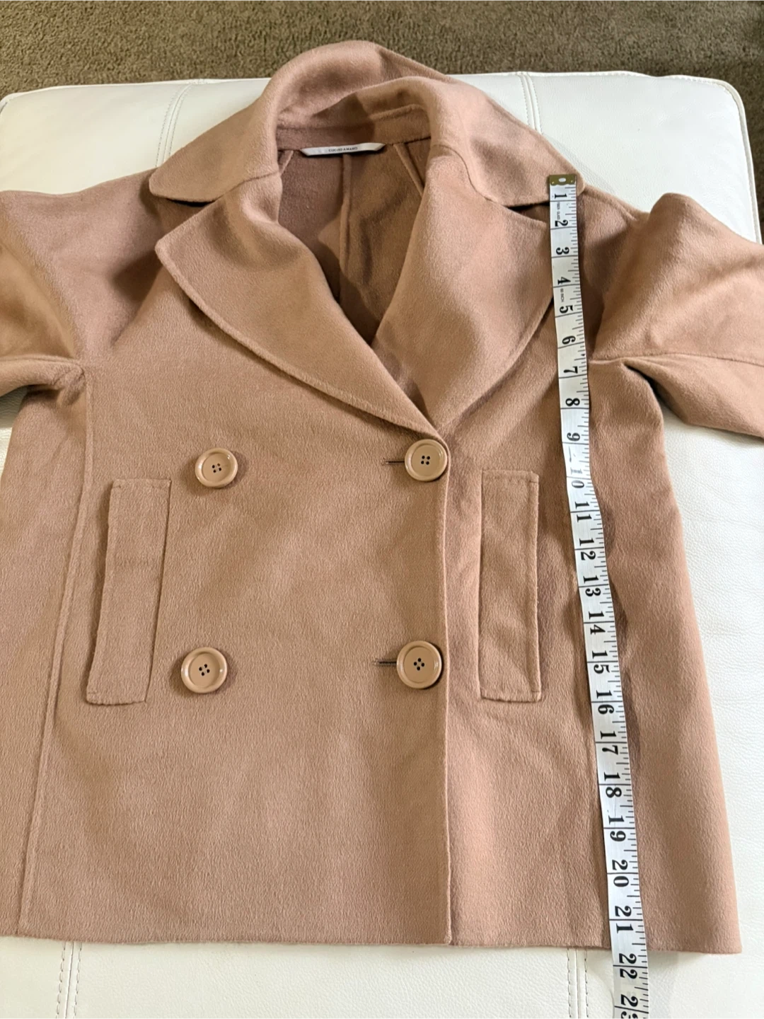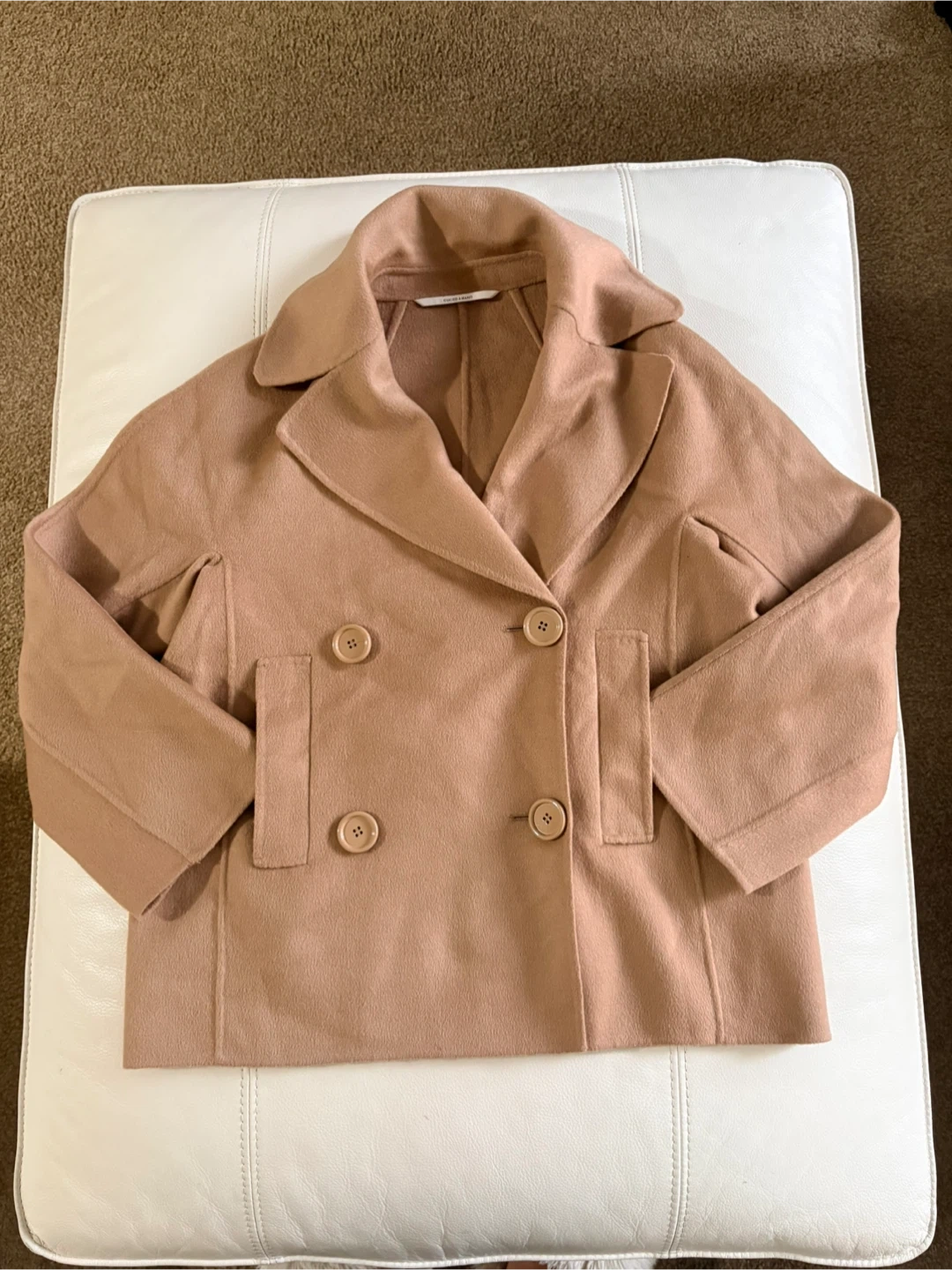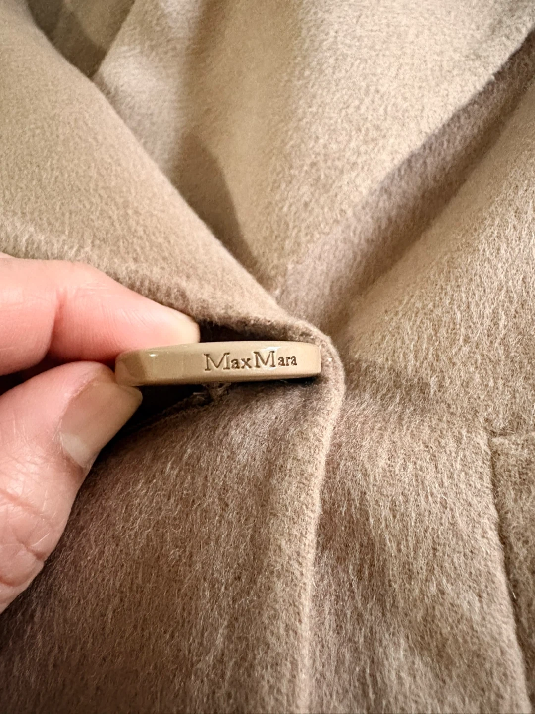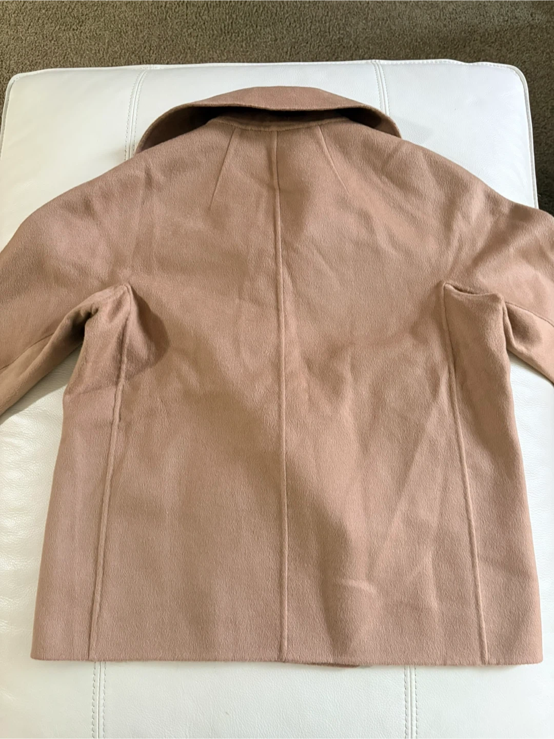 Here's a stylish Max Mara jacket in a lovely beige colour. It's made from a wool and has a classic double-breasted design. The jacket is in great condition and ready to add a touch of elegance to your wardrobe